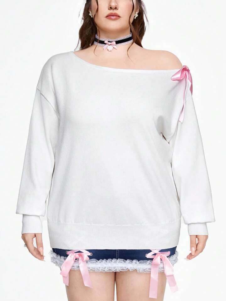 Kawaii Casual Bow-Tie Shoulder Plus Size Sweater