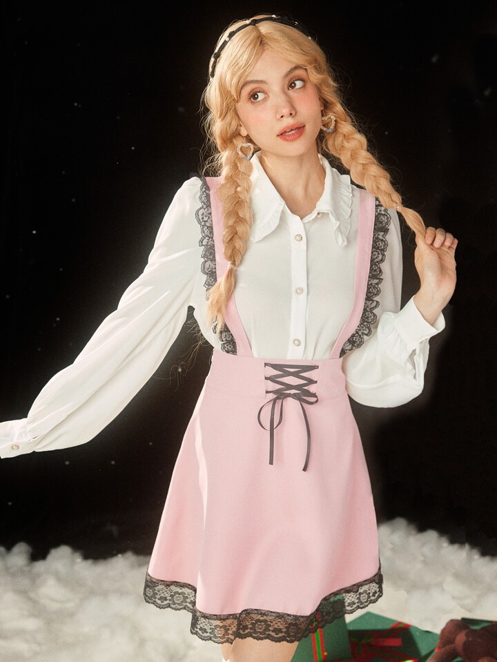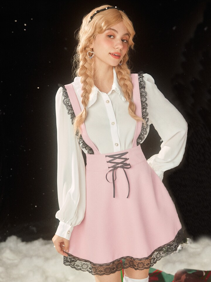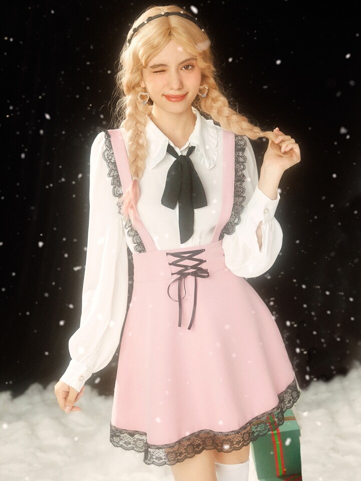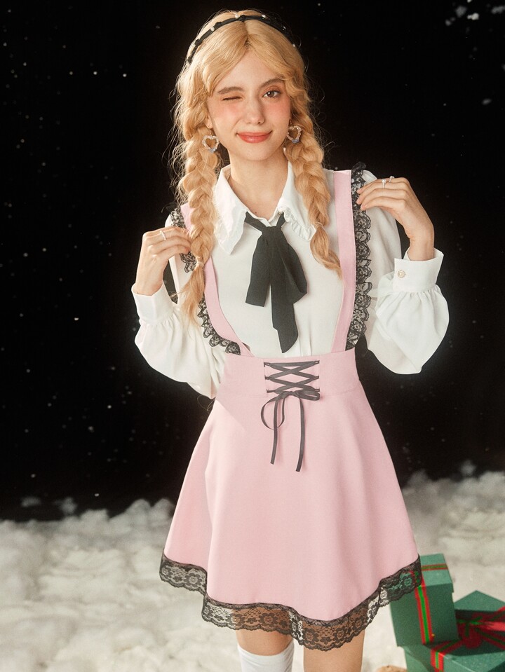 Kawaii Christmas Lace Up Contrast Lace Suspender Skirt