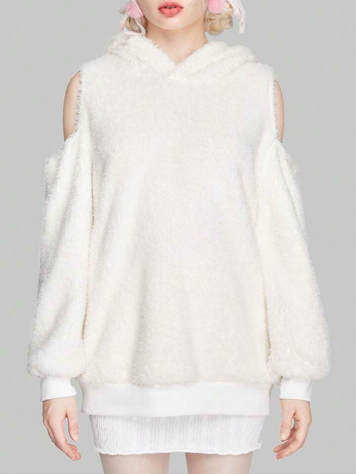 Kawaii Cold Shoulder 3D Ear Design Teddy Hoodie