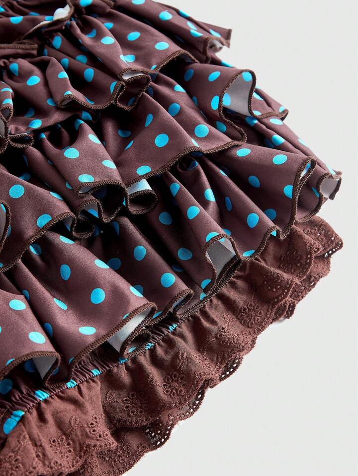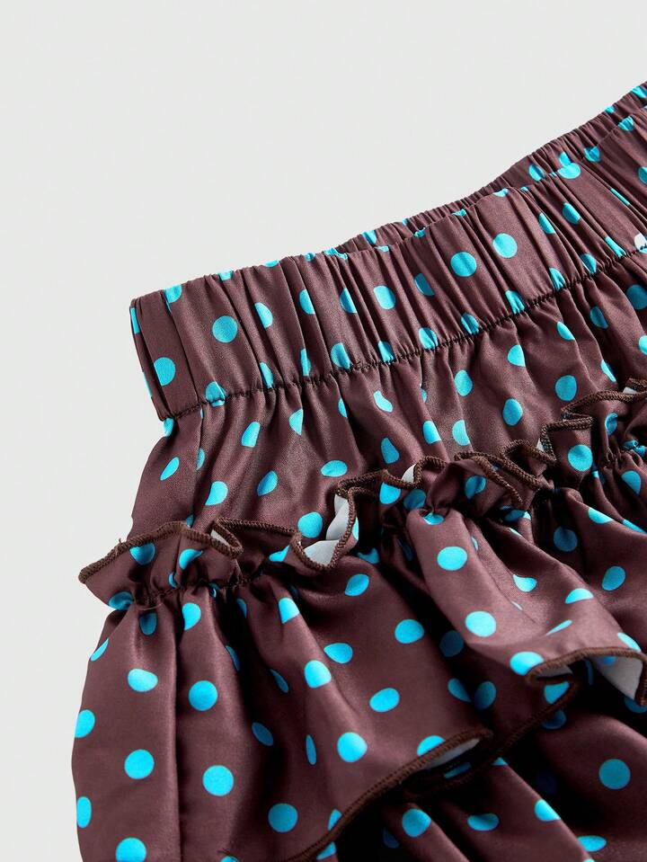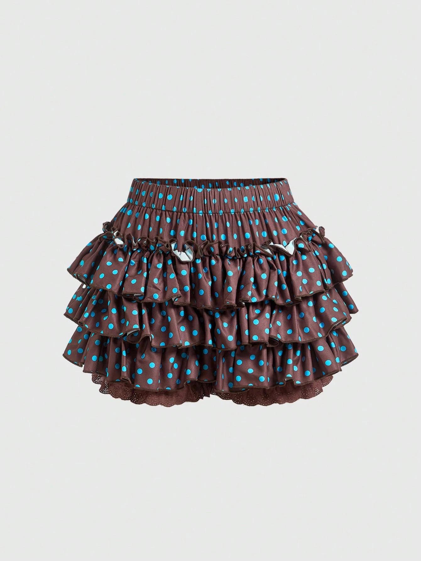 Kawaii Contrast Color Polka Dot Print Elastic Waist Adorable Ruffle Hem Lace Patchwork Women Shorts
