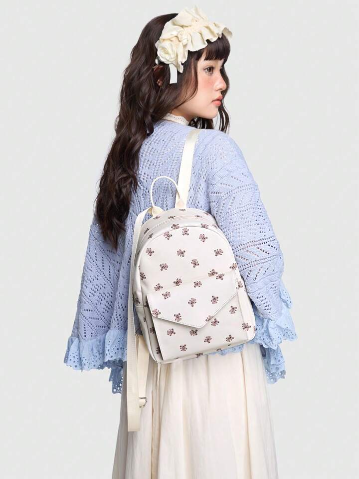 Kawaii Cute Bear Print Zipper Flap Backpack