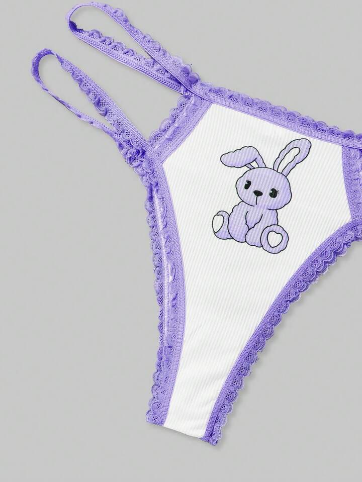 Kawaii Cute Bunny Heart Design Contrast Trim Padded Bra Set