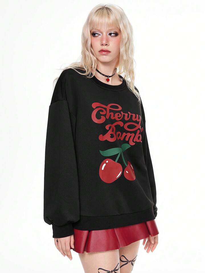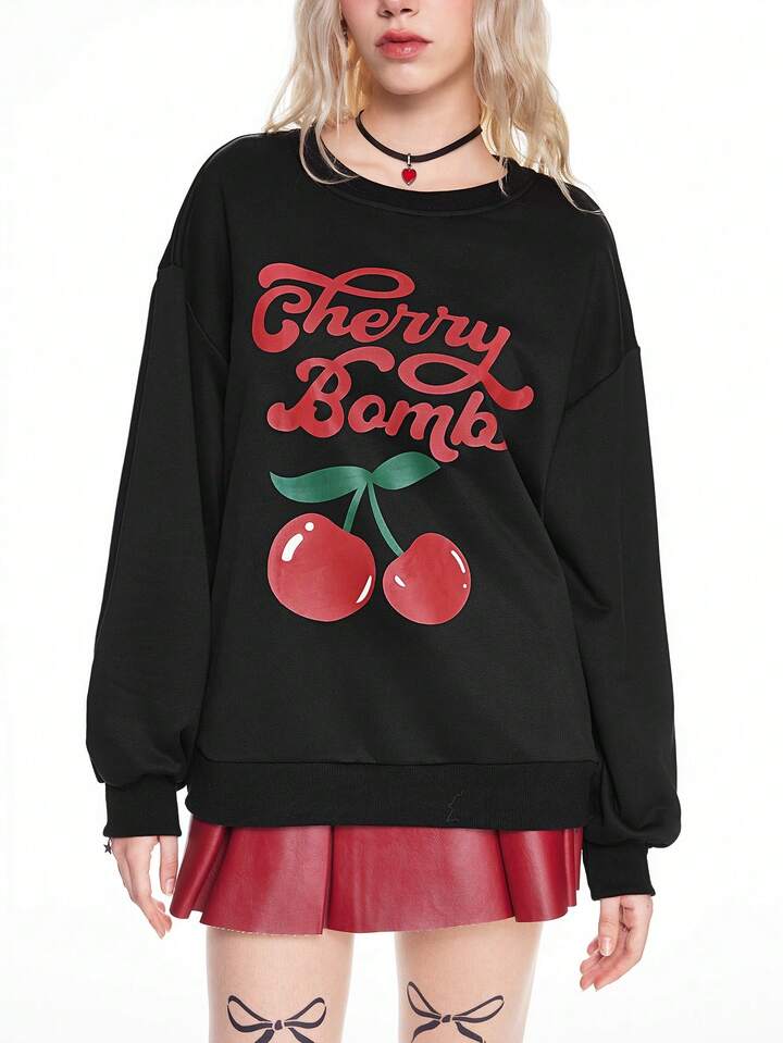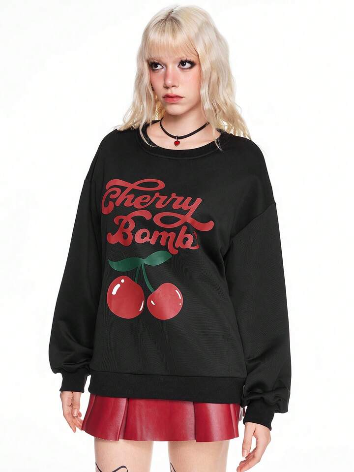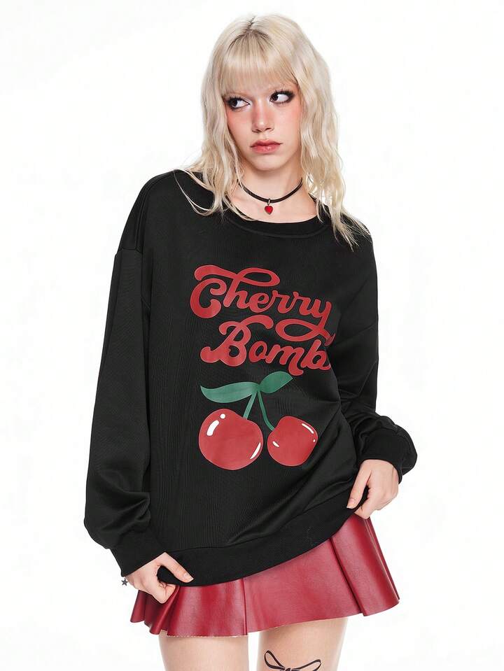 Kawaii Cute Cherry Letter Graphic Printed Casual Style Women Hoodie