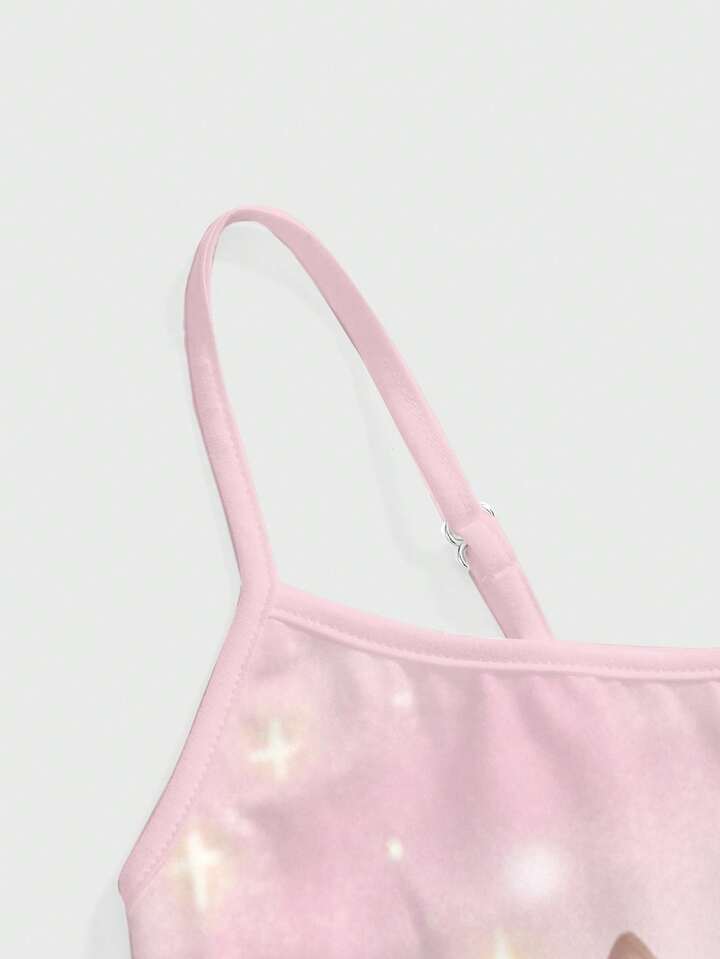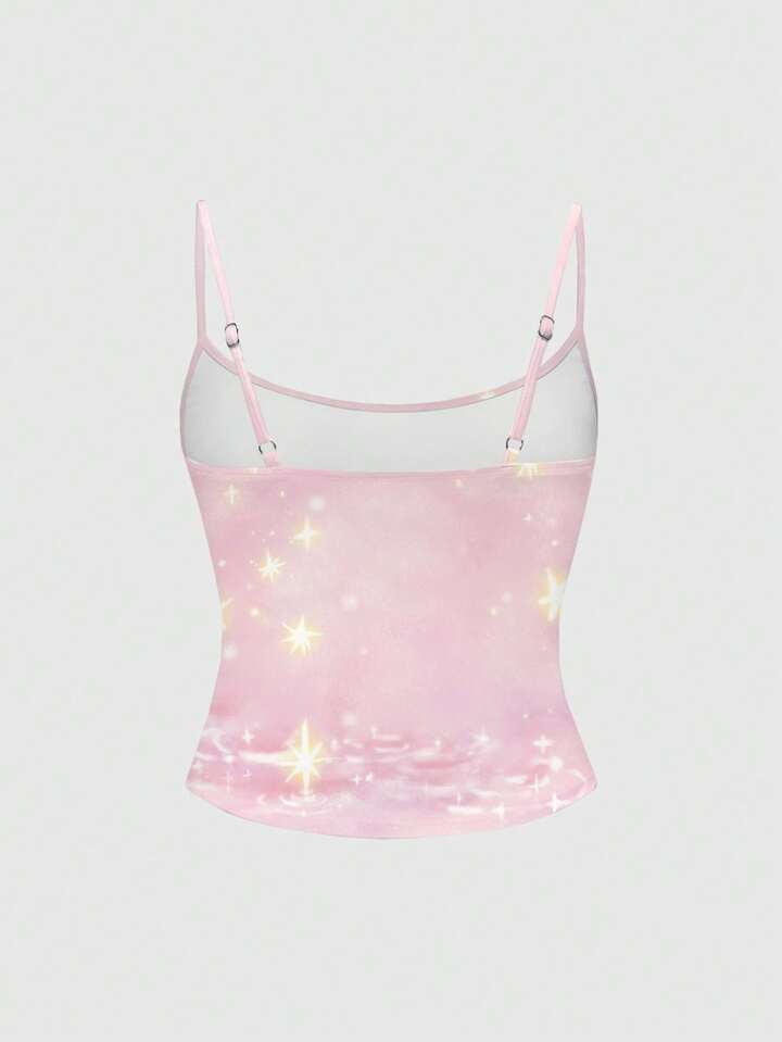 Kawaii Cute Deer Graphic Sweet Innocent Girly Star Print Pink Camisole For Women