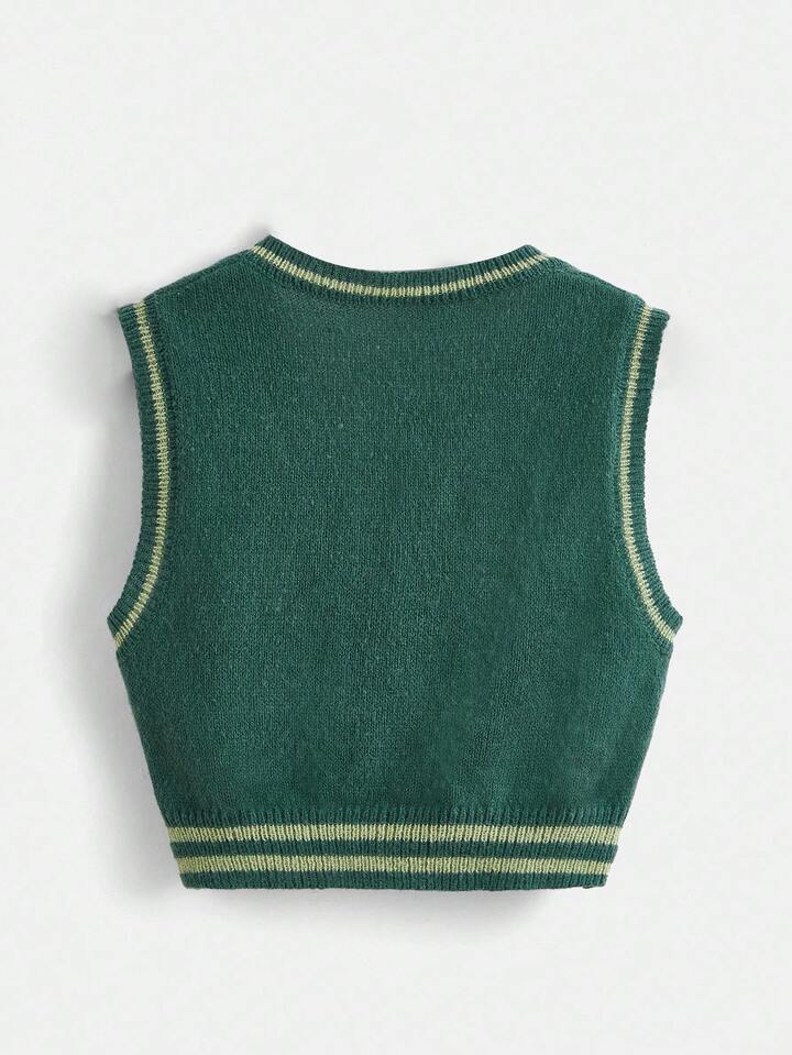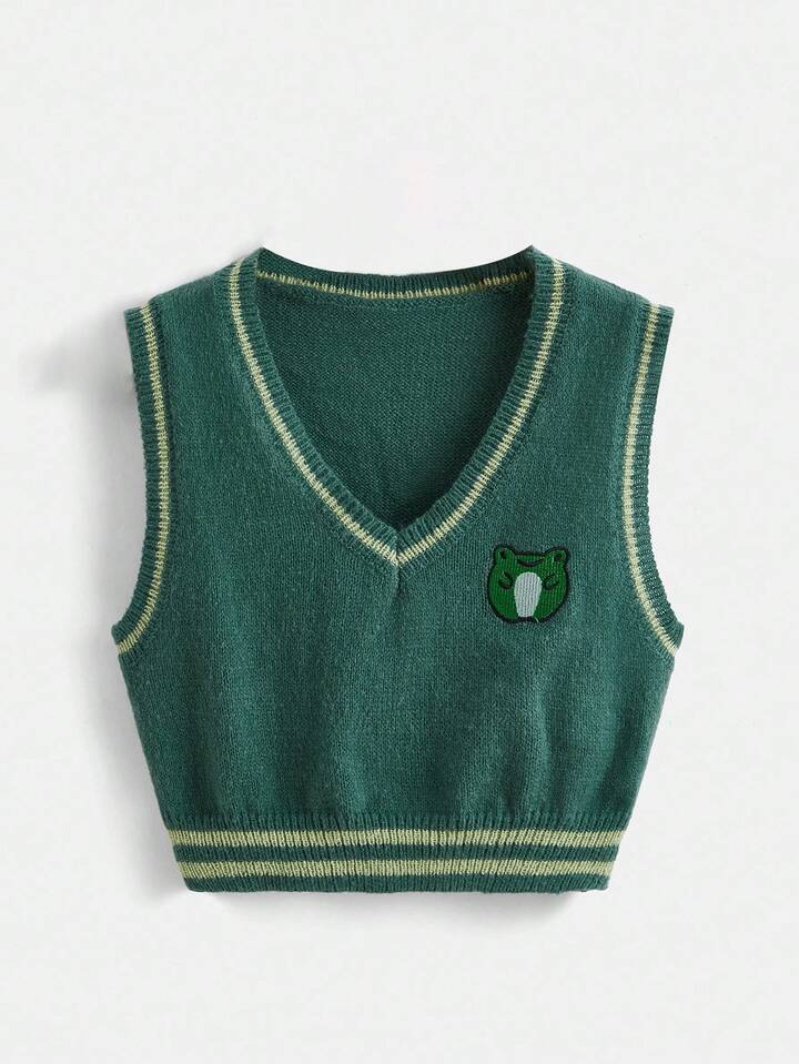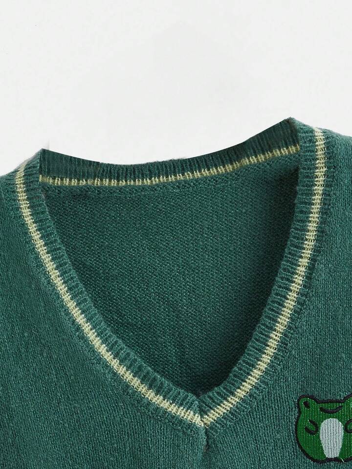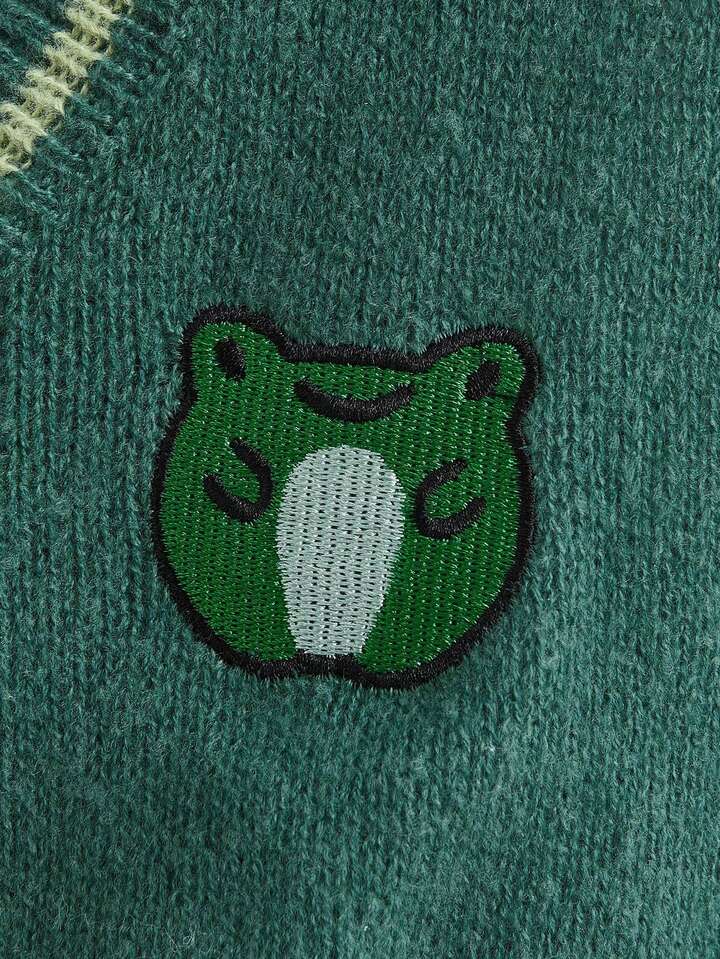 Kawaii Cute Frog Embroidery Pattern Knitted Vest