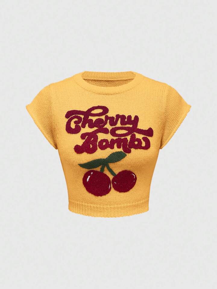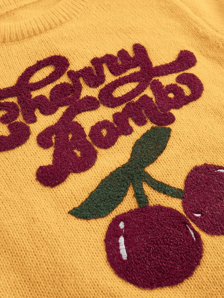 Kawaii Cute & Innocent Collegiate Style Cherry Embroidered High Neck Lantern Sleeve Women Sweater