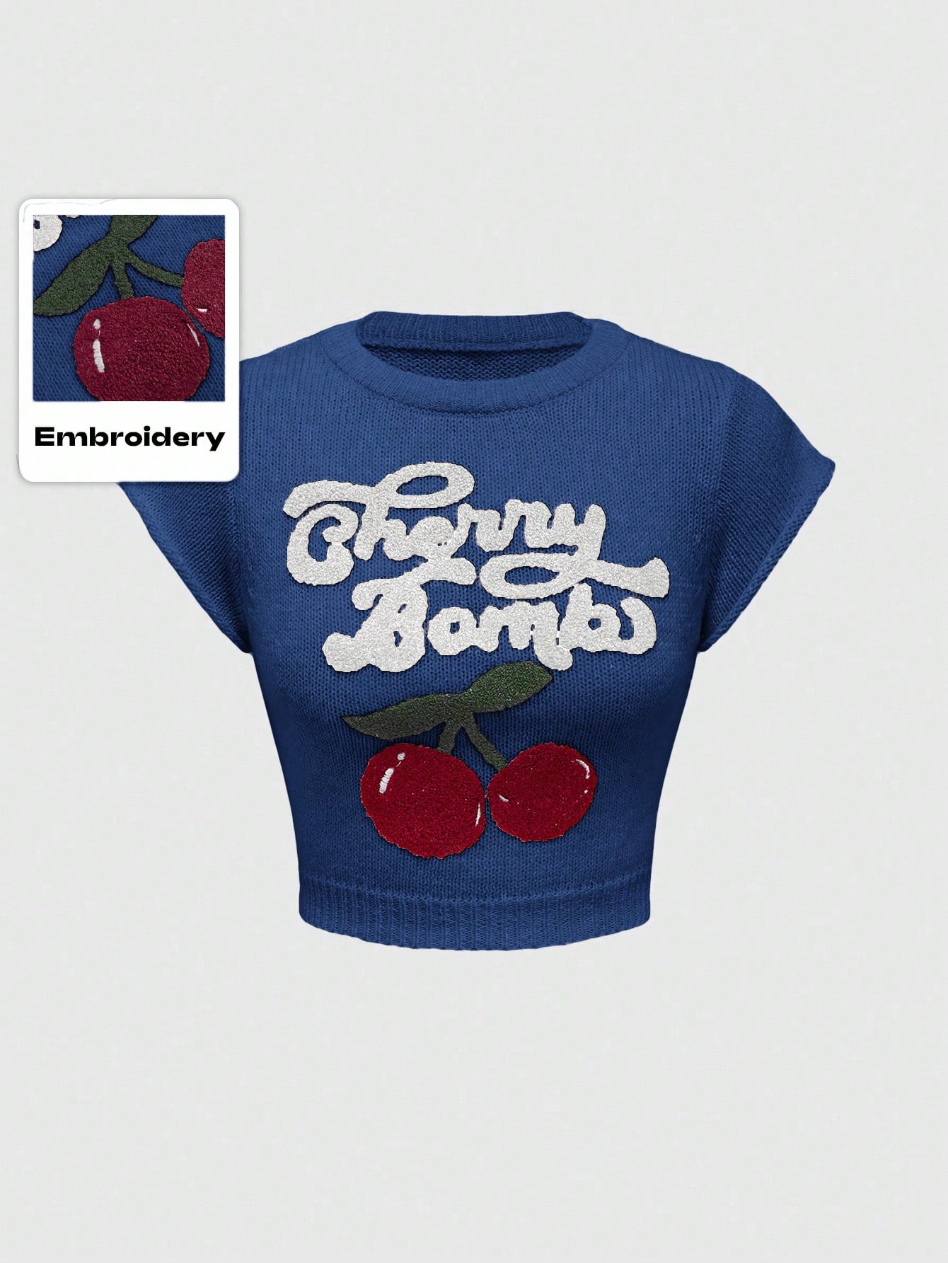 Kawaii Cute & Innocent Collegiate Style Cherry Embroidered High Neck Lantern Sleeve Women Sweater