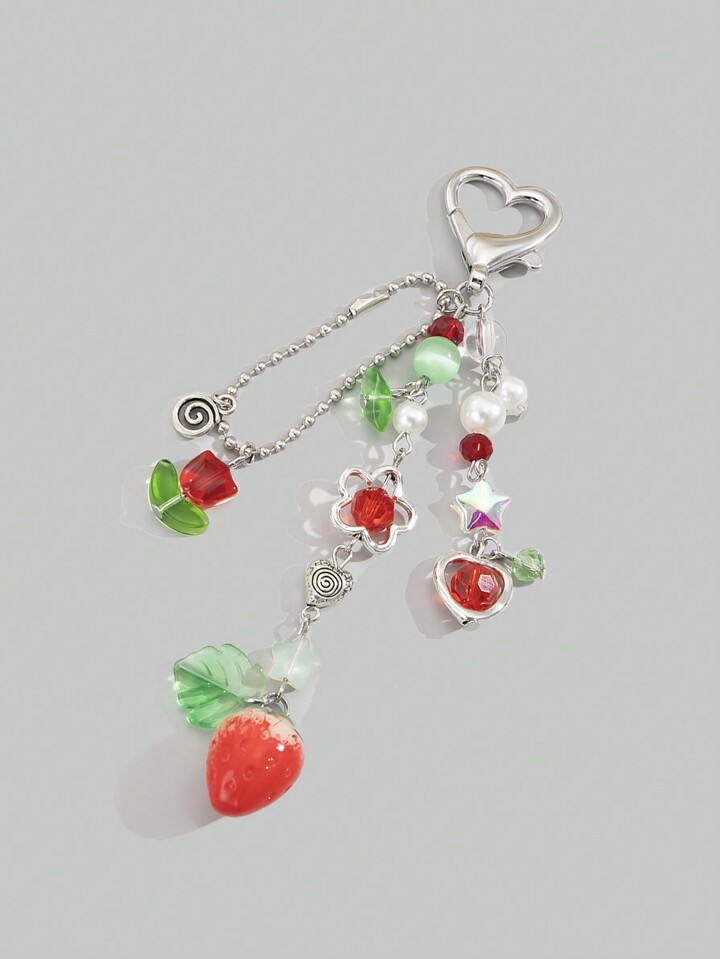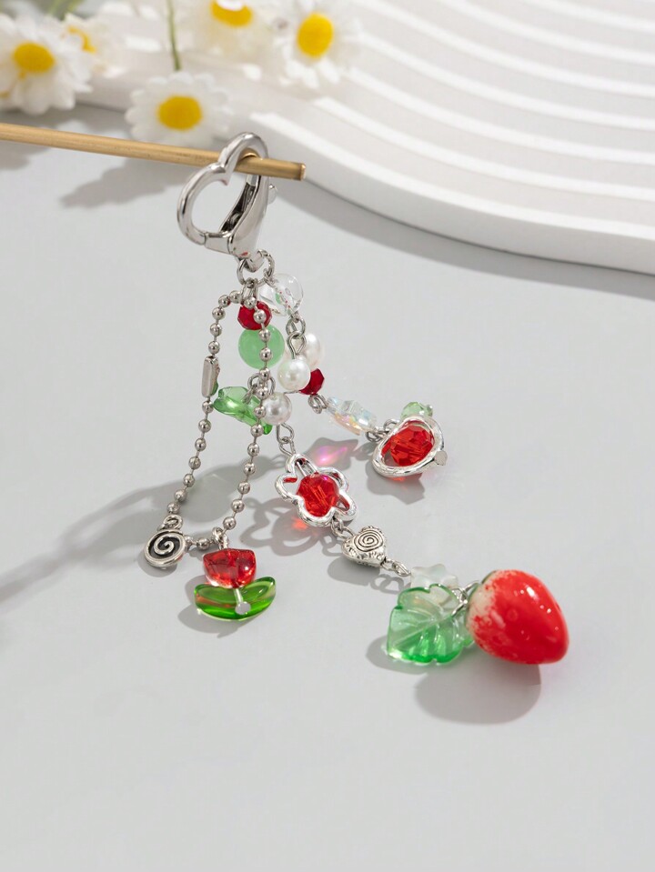 Kawaii Cute Minimalist Flower Strawberry Crystal Tassel Keychain, Suitable For Bag, Phone Decor, Gifts For Friends And Holiday Valentines