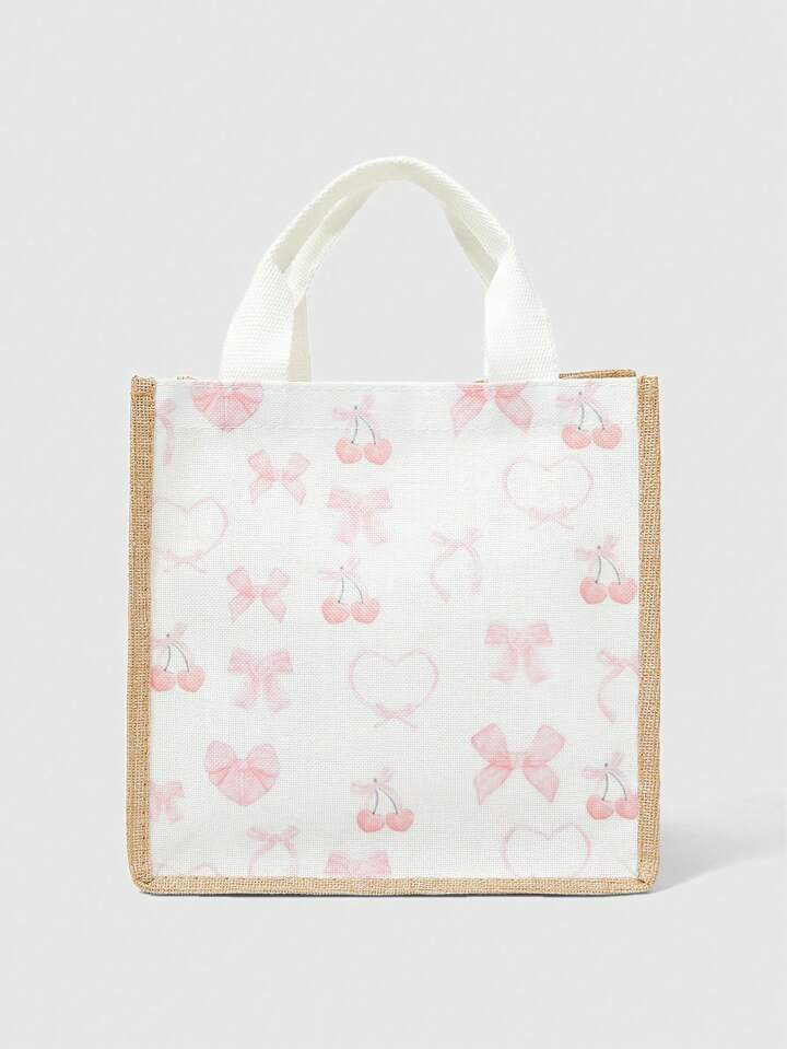 Kawaii Cute Pink Bow & Cherry Blossom Bow Print Women Handbag