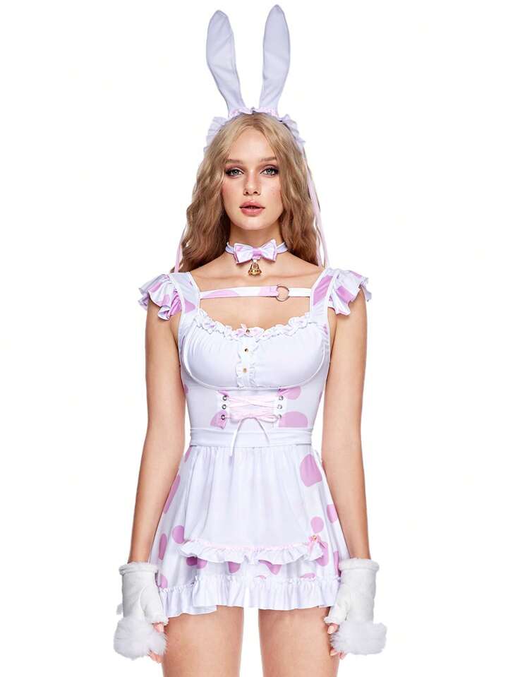 Kawaii Cute Pink Cow Costume Women Sexy Maid Outfit
