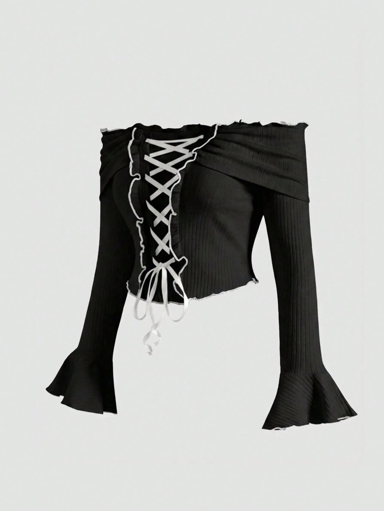 Kawaii Cute Pink Off-Shoulder Tie-Up Contrast Color Blouse, Plus Size Plus Size Women Pink Knit Sweater, Sweet Casual Autumn/Winter Plus Size Women Tops