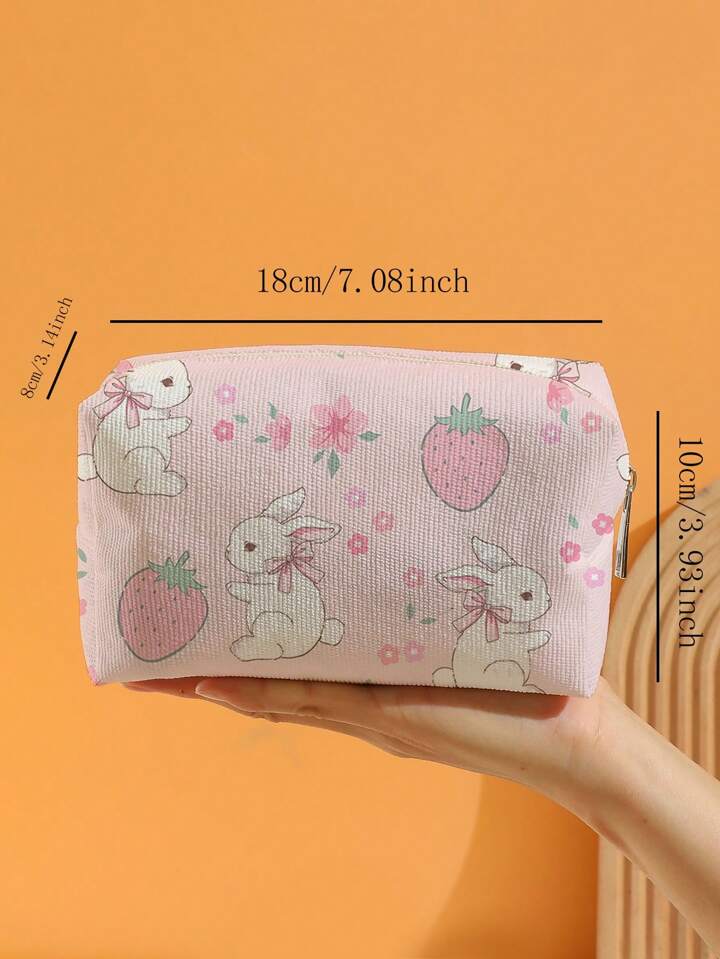Kawaii Cute Pink Rabbit & Strawberry Pattern Octagonal Velvet Makeup Bag