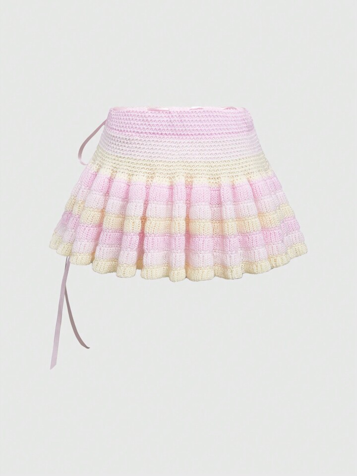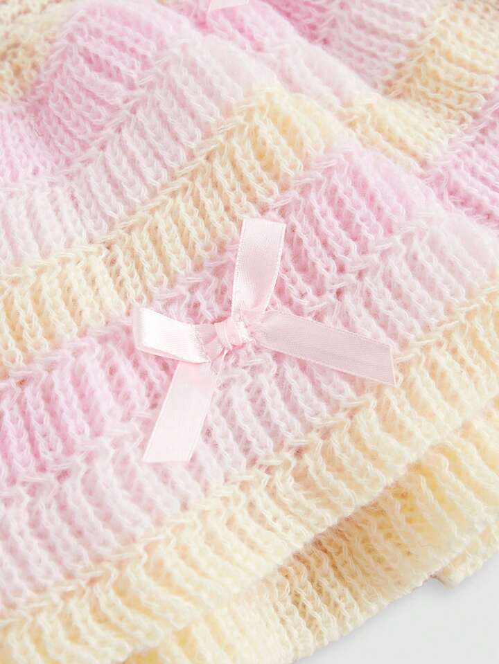 Kawaii Cute Sweet Pastel Color Bow Decorated Women Knit Skirt