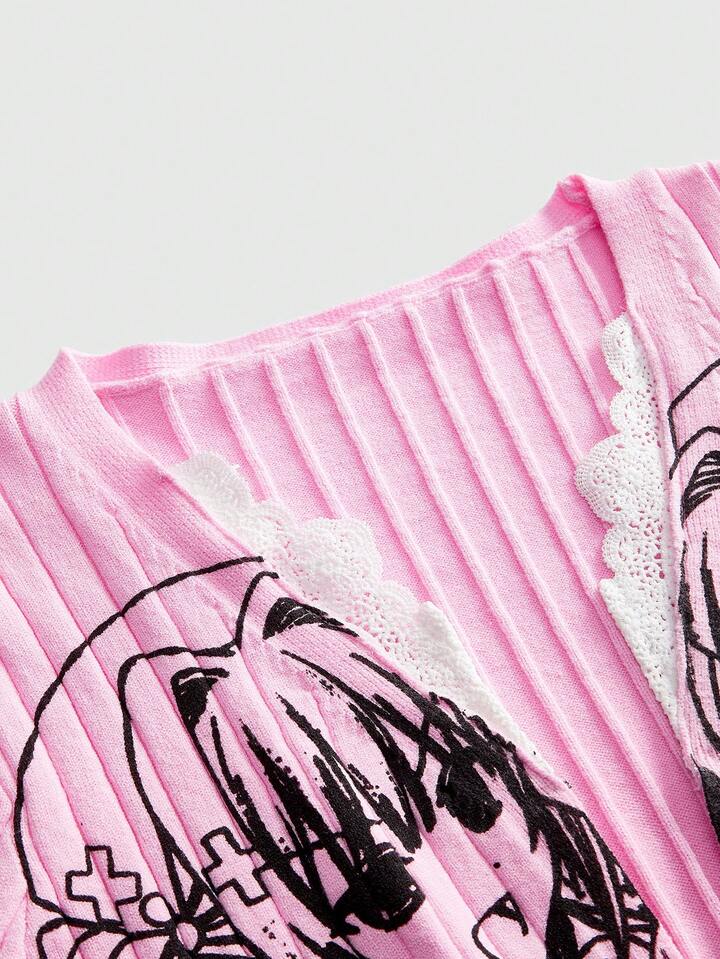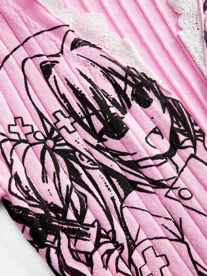 Kawaii Cute Sweet Pink Anime Girl Print Contrast Lace Women Sweater