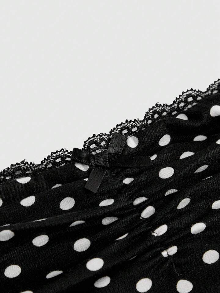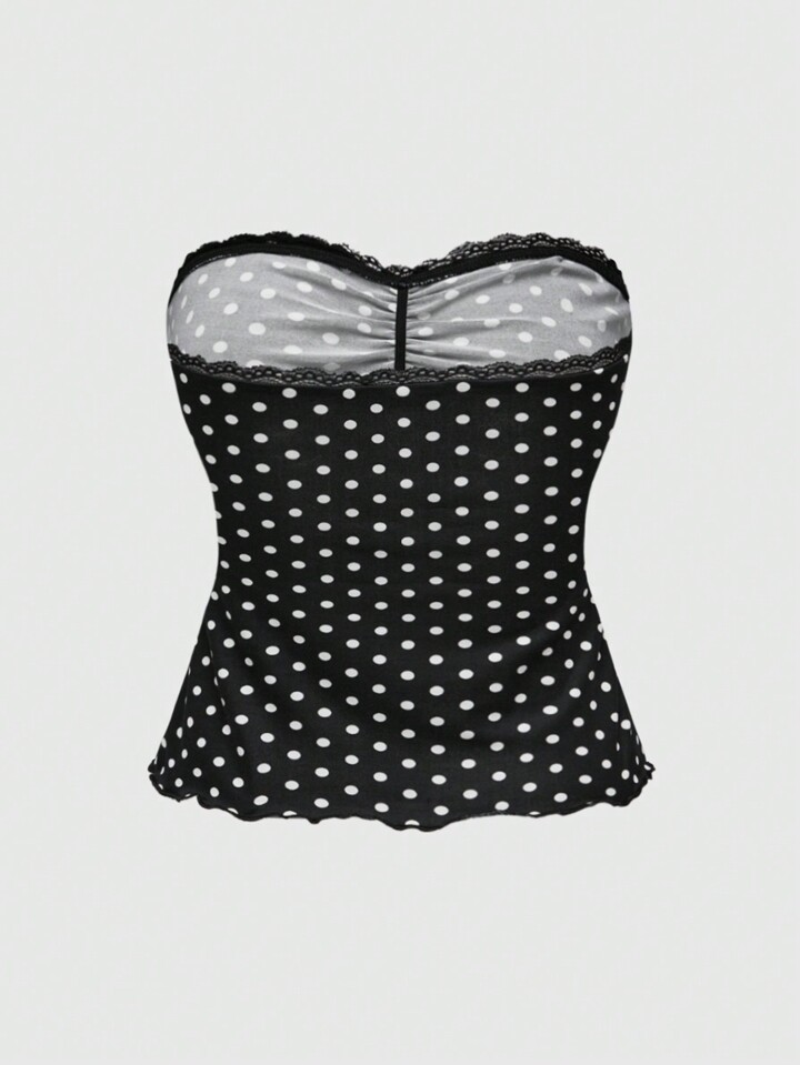 Kawaii Delicate & Sexy Cherry Print Lace Trim Bowknot Ruched Elastic Fitted Women Casual Top