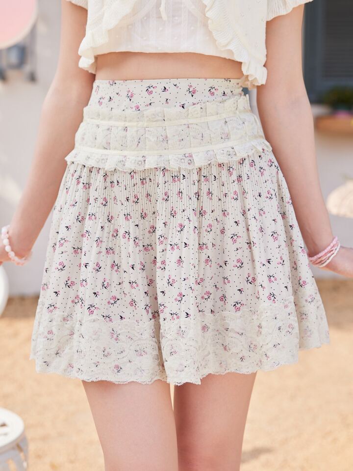 Kawaii Ditsy Floral Print Contrast Lace Skirt