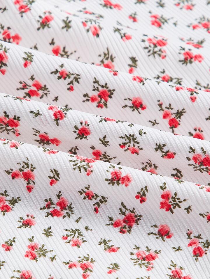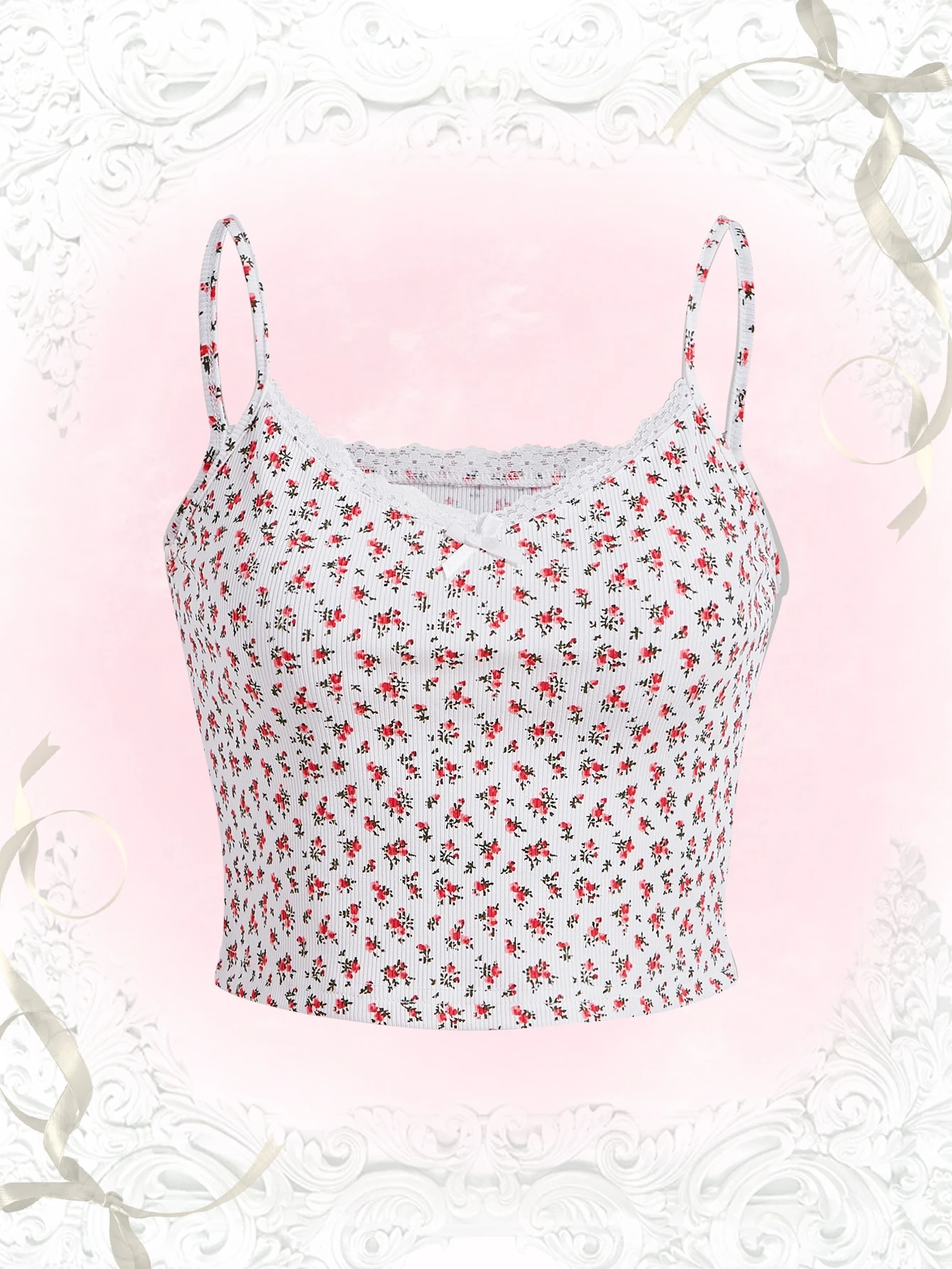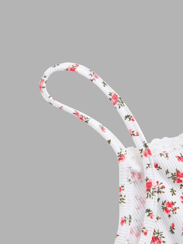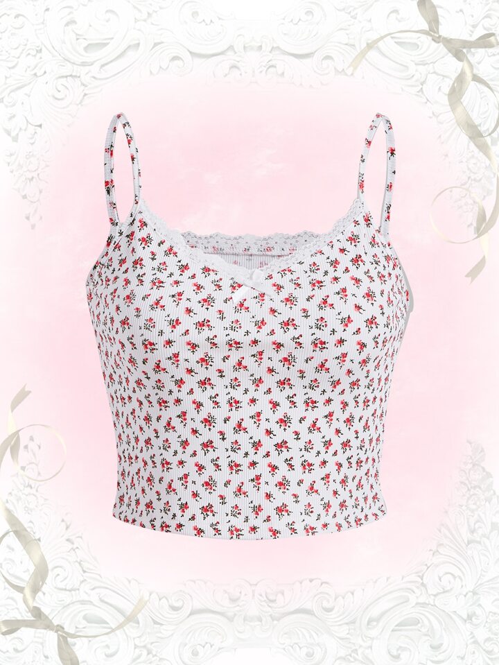 Kawaii Ditsy Floral Print Lace Trim Cami Top