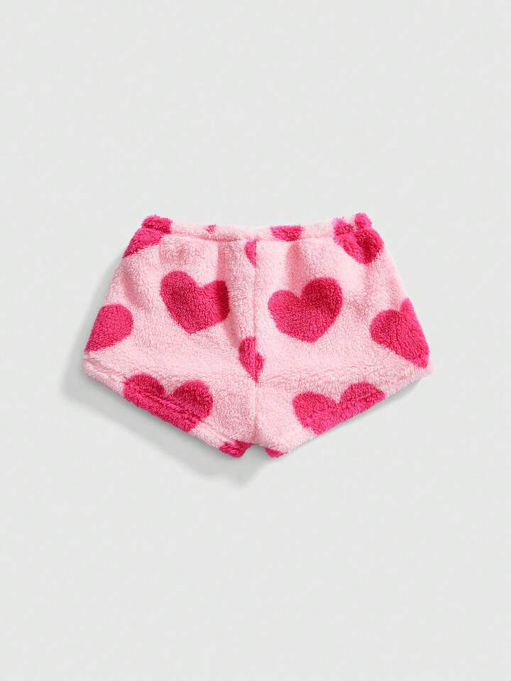 Kawaii Double-Sided Arctic Velvet Heart Pattern Home Wear Pajamas Bottoms