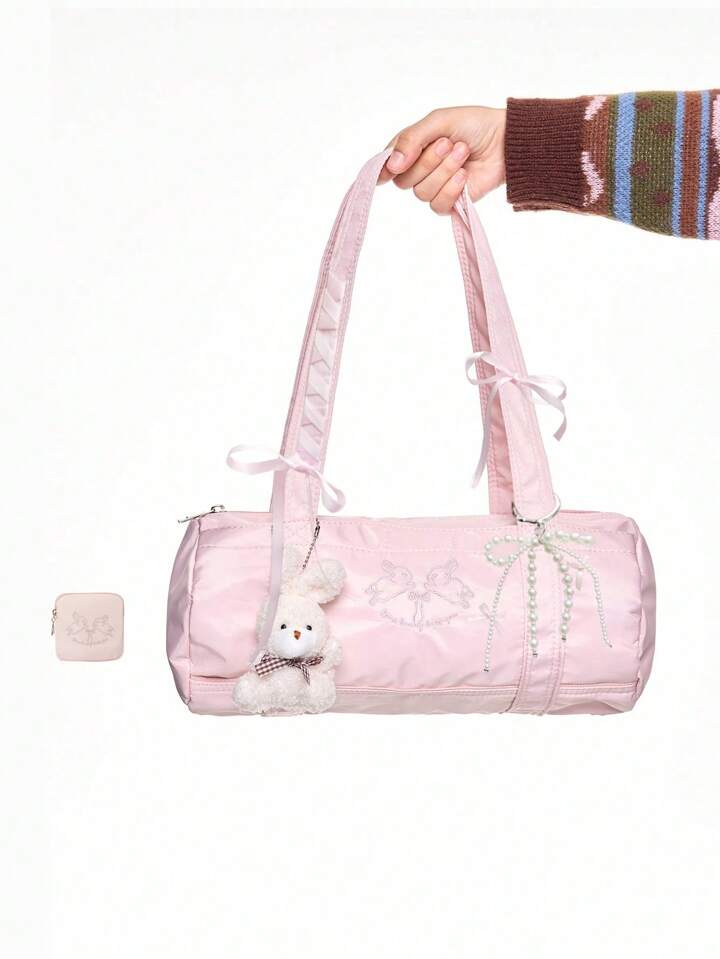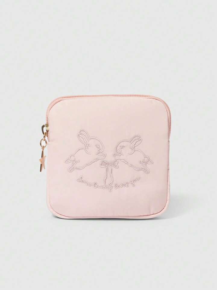 Kawaii Easter 2 Pieces Set: Rabbit Embroidery Large Capacity Shoulder Bag And Oxford Cloth Shopping Tote, Fashionable & Versatile, Gift Set