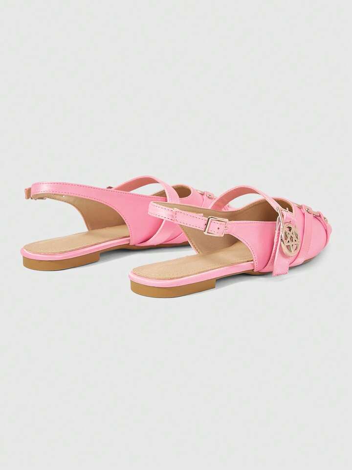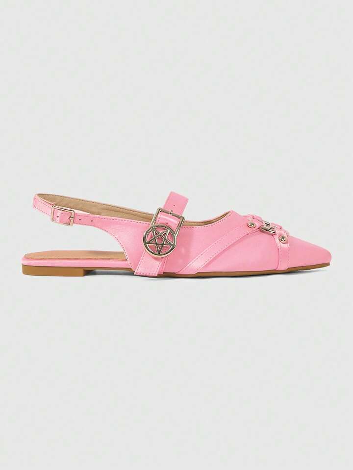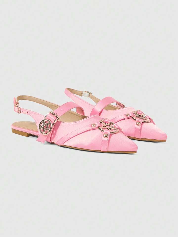 Kawaii Elegant Fashion Casual Pointy Toe Flat Shoes, Gothic Style Silk Fabric Pink Flat Shoes, Suitable For Party, Daily Wear, Evening Dress