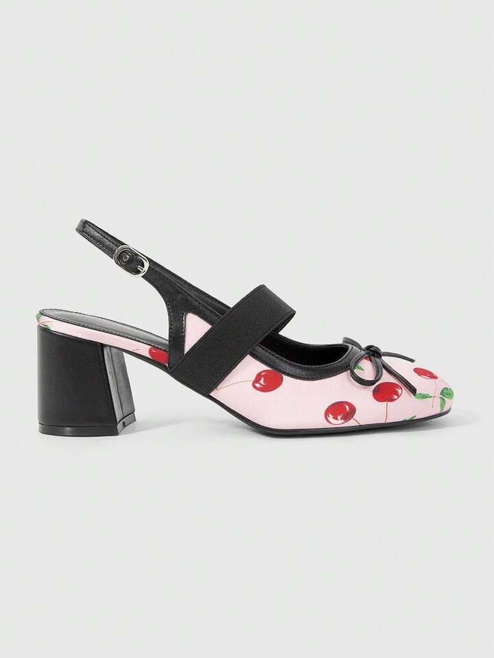 Kawaii Elegant Mary Jane Style Hollow Out High-End Women Contrasting Plaid Cloth Chunky Heel Pumps