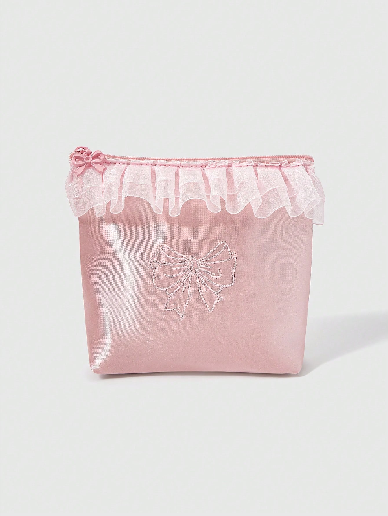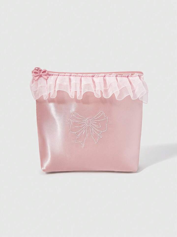 Kawaii Embroidered Bow Trim Small Bucket Tissue Box Paper Towel Case, Cosmetic Bag, Travel Sanitary Pad Storage Pouch, Gift For Coin Purse