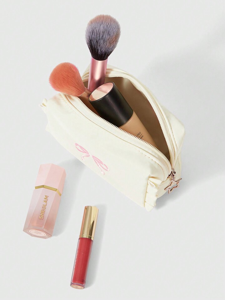 Kawaii Embroidered Cosmetic Bag With Bowknot For Storing Coins