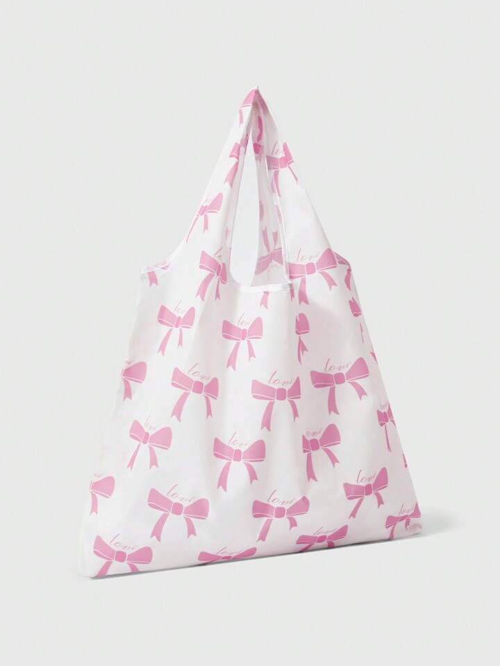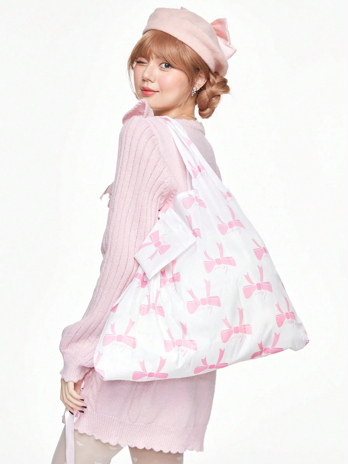 Kawaii Fashion Cartoon Bow Decor Large Capacity Portable Foldable Tote Bag With Coin Purse