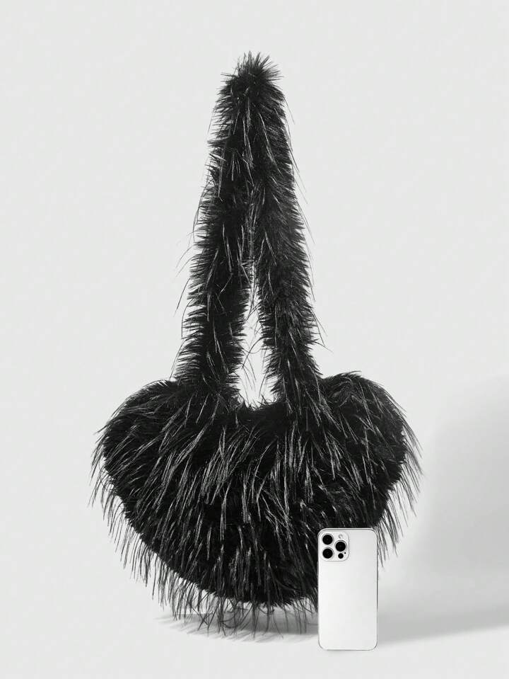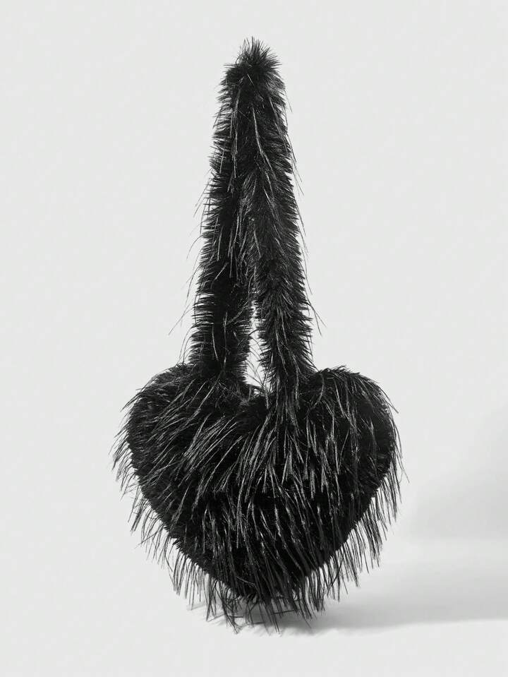 Kawaii Fashion Heart Shape Tassel Shoulder Bag, Casual Everyday Carry Pouch