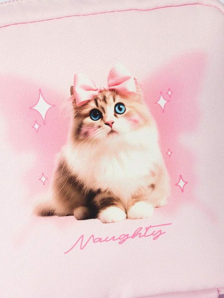 Kawaii Fashionable Cartoon Cat Thickened Quilted Large Capacity Portable Cosmetic Bag, Small Square Bag 619986