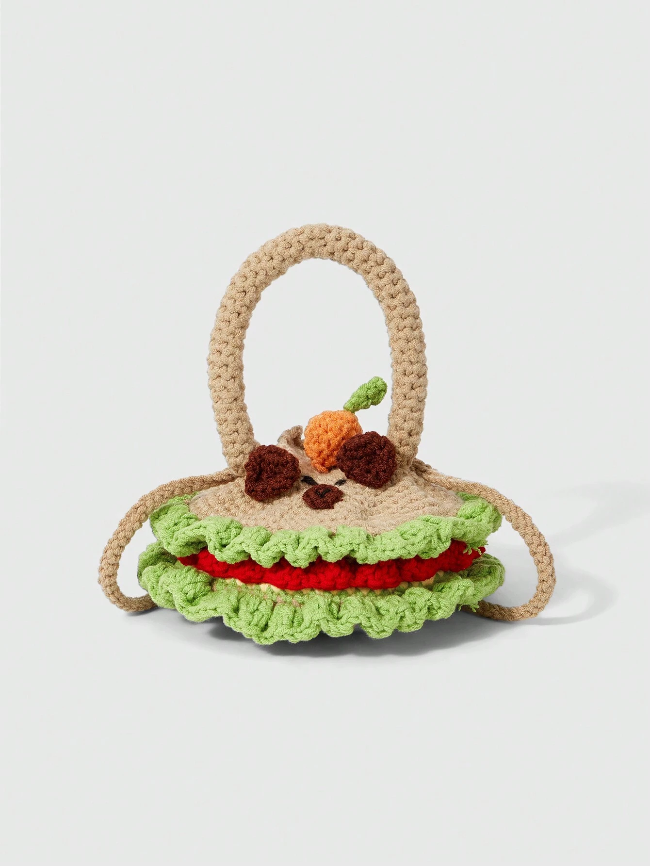 Kawaii Fashionable Colorblock Cute Hand-Knit Tote Bag For Women