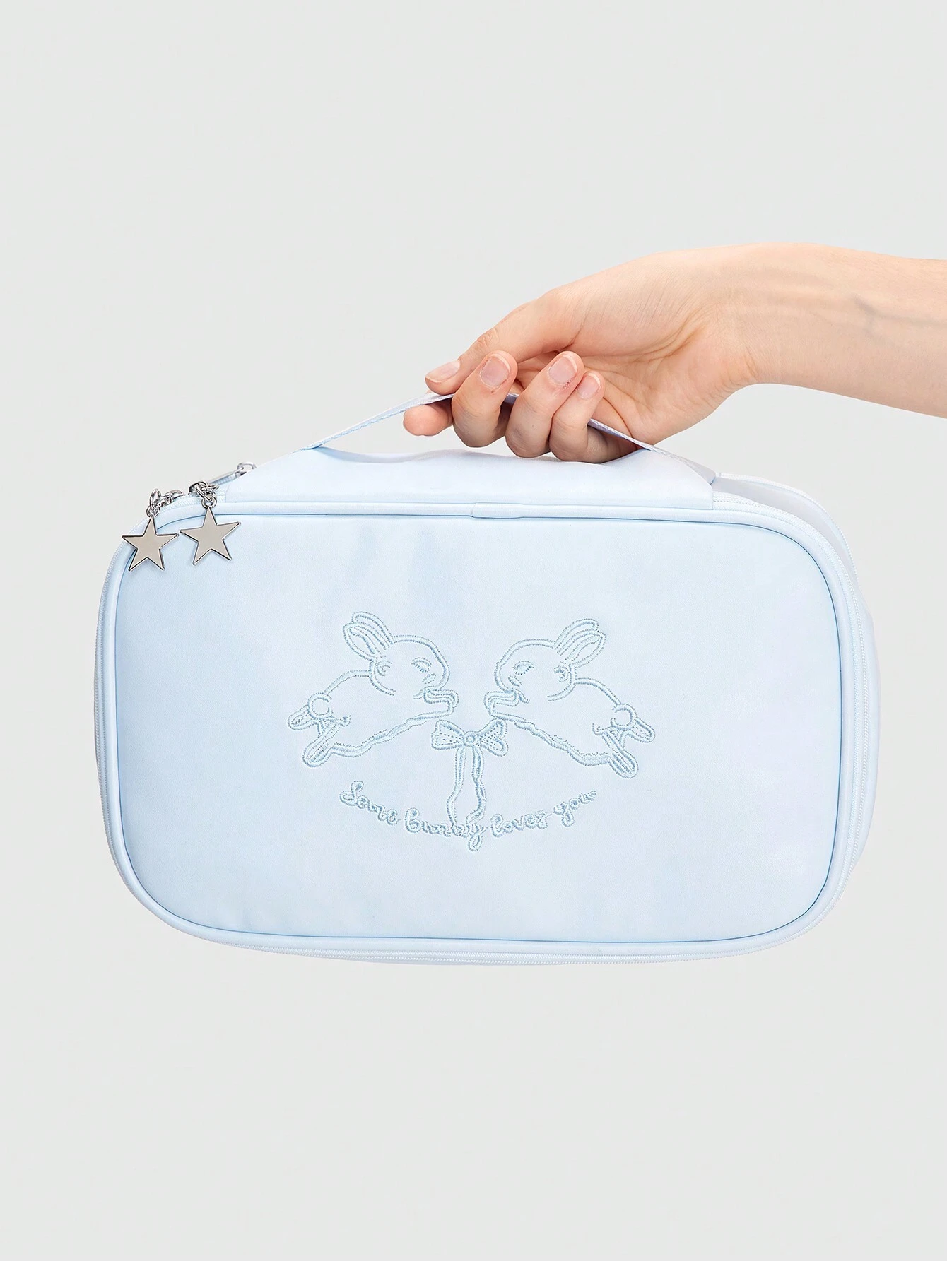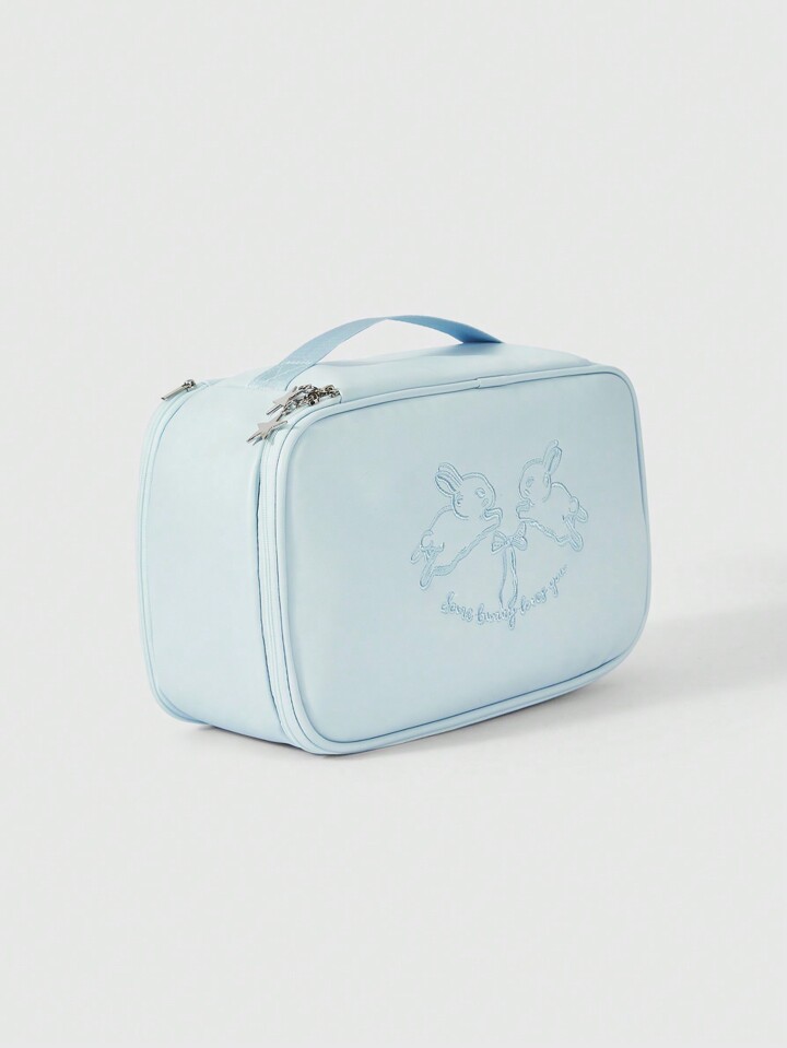 Kawaii Floral 336027 Rabbit Bow Embroidered PU Leather Cosmetic Bag Travel Organizer Pouch Underwear Packing Cube Set For Luggage Clothes Sorting