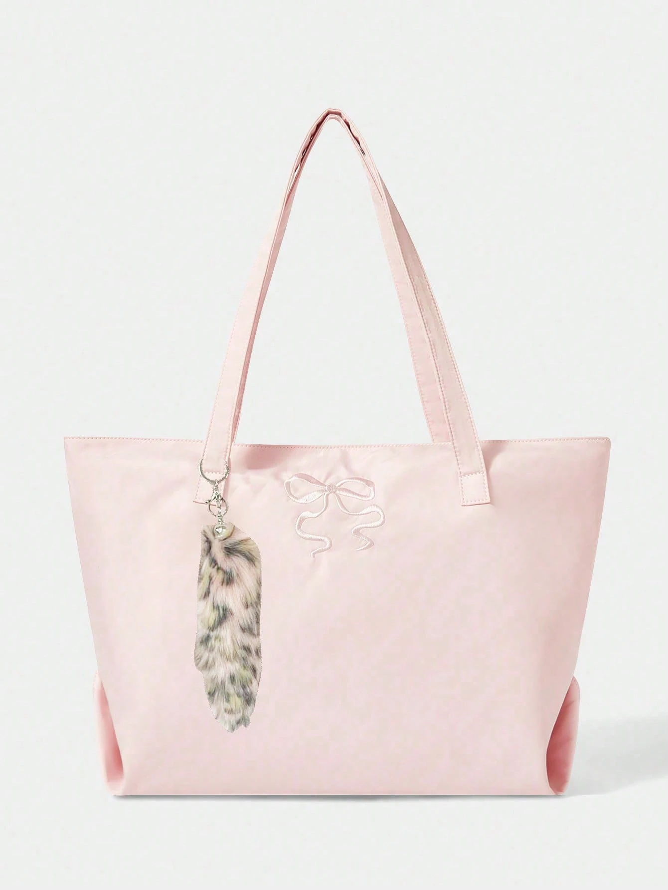 Kawaii Floral Pattern 84225 - Bow Embroidery Large Capacity Shoulder Bag, Fashionable Oxford Cloth Tote Bag, Fashionable Tote Bag With Zipper, Fashionable Bow Purse For Women, Tote Bags For Women, College Essentials