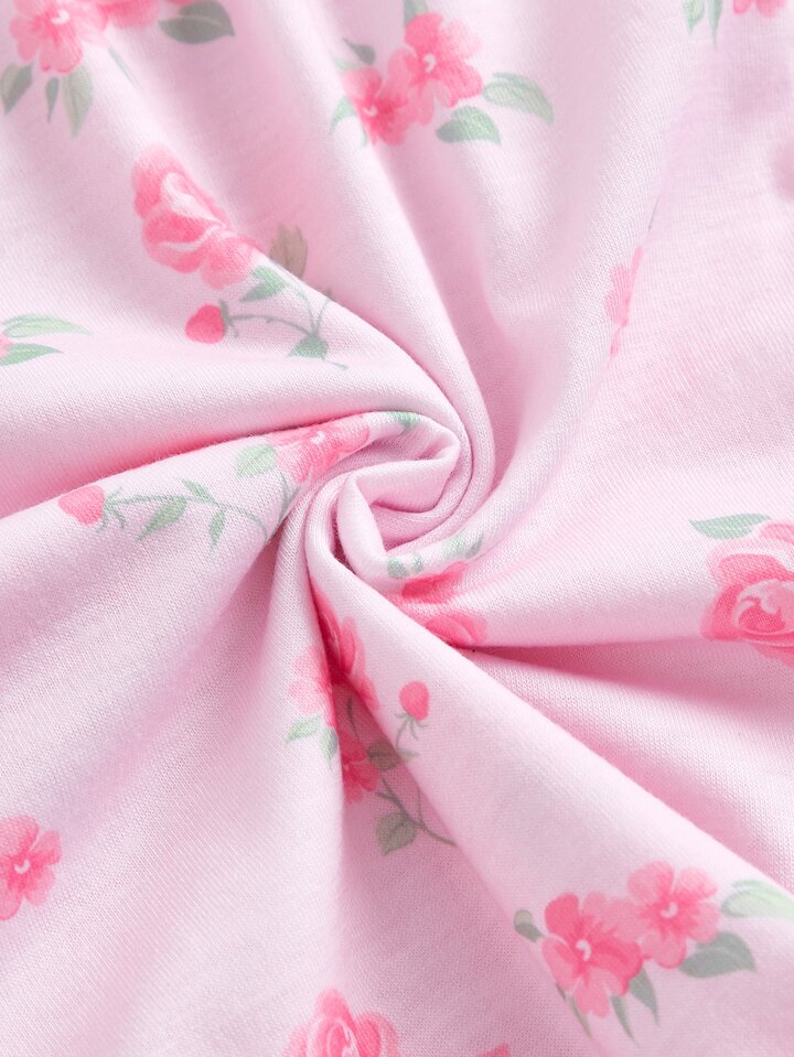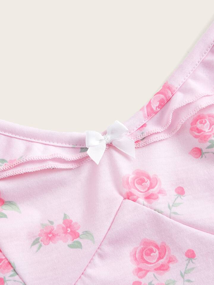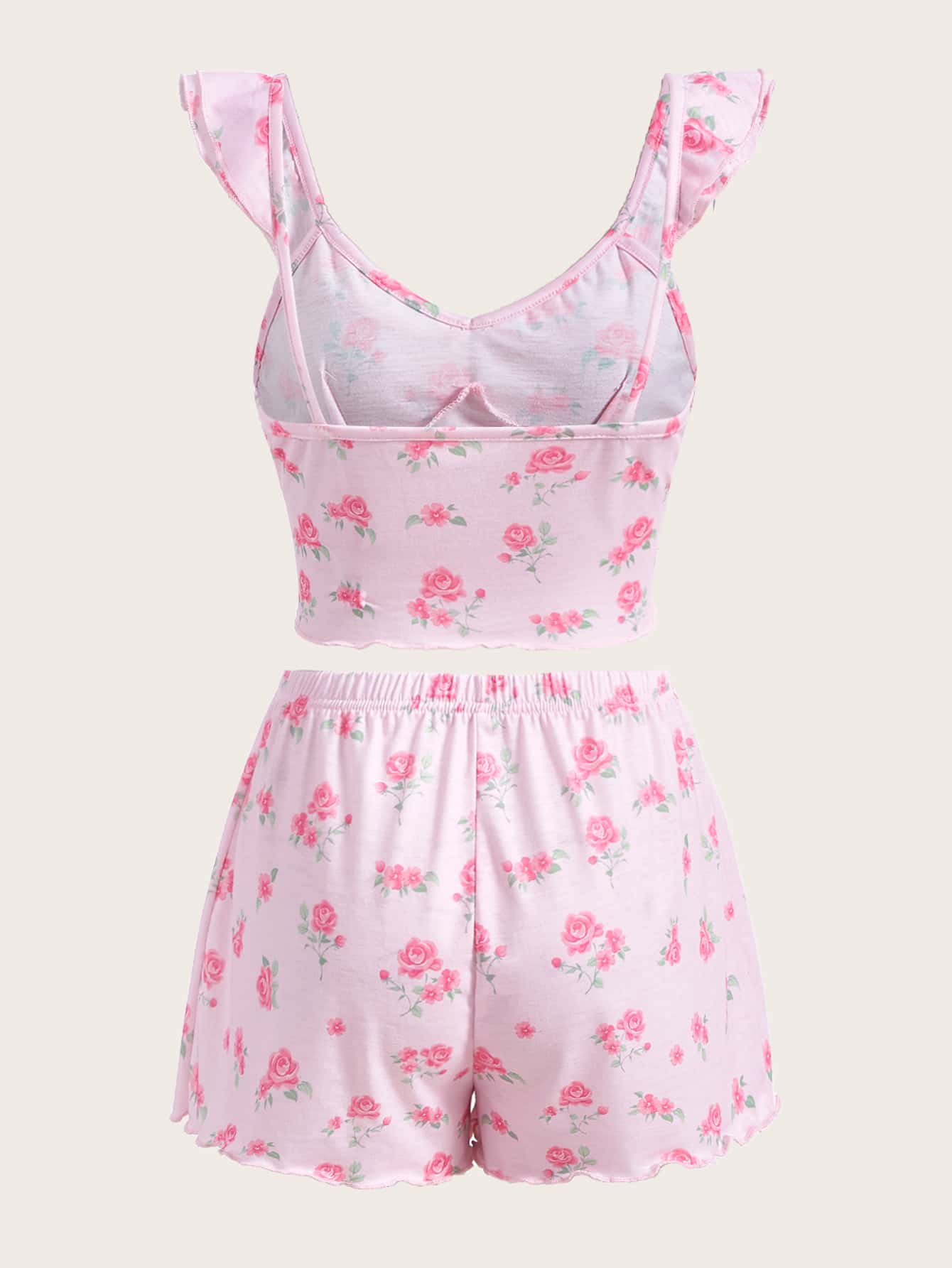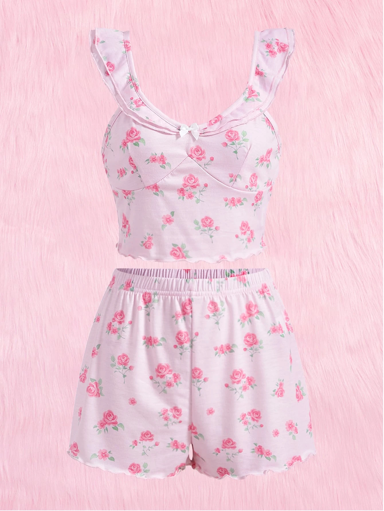 Kawaii Floral Print Ruffle Trim Lounge Set