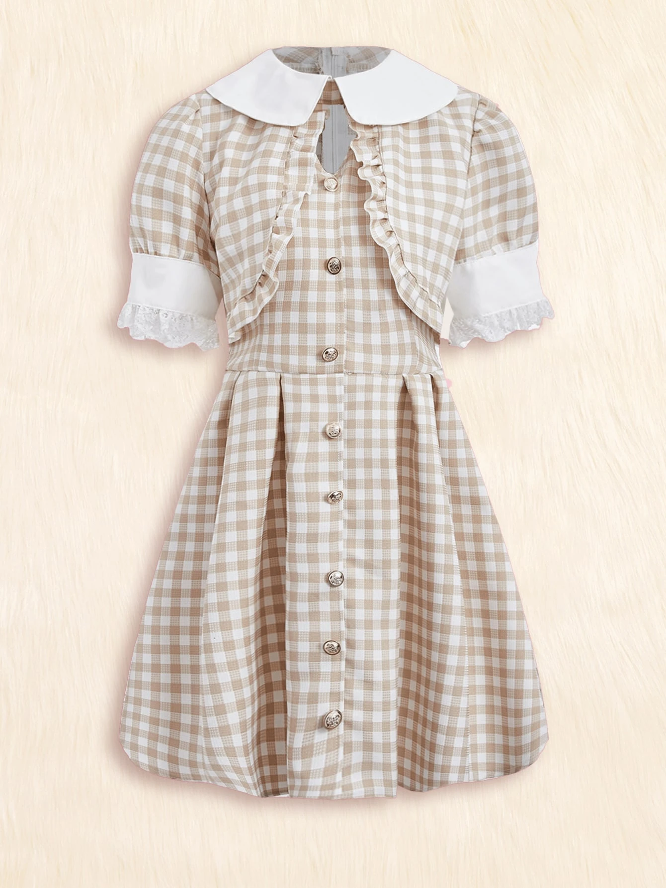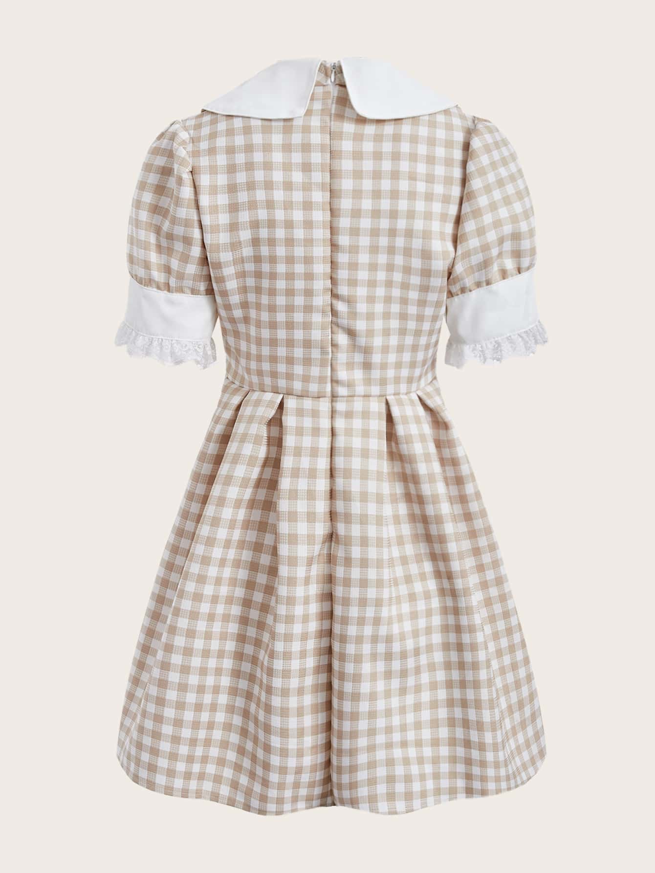 Kawaii Gingham Frill Trim Puff Sleeve Dress