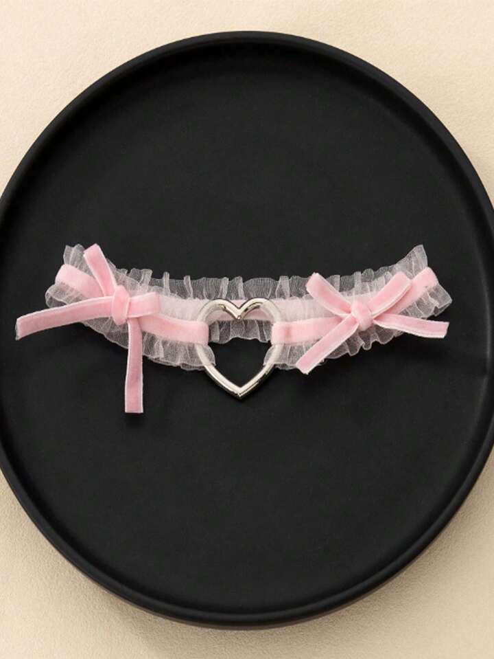 Kawaii Harajuku Fashion Sexy Black Lolita Elastic Lace Heart Bow Garters For Women