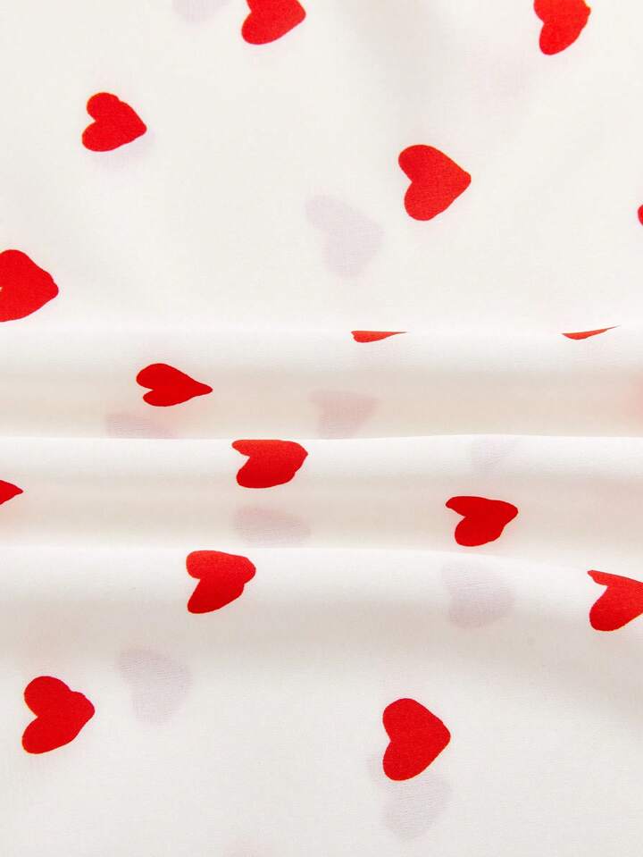 Kawaii Heart Print Fuzzy Trim Costume Dress With 1pair Oversleeves