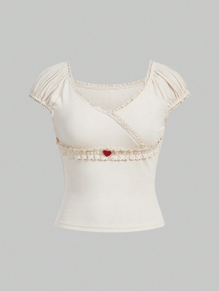Kawaii Heart Shaped Decorated Lace Trimmed T-Shirt