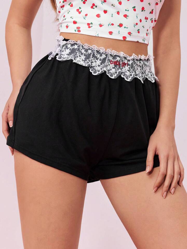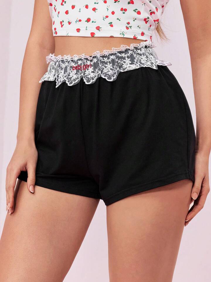 Kawaii Lace Splice Embroidered Baby Design Pajama Bottoms