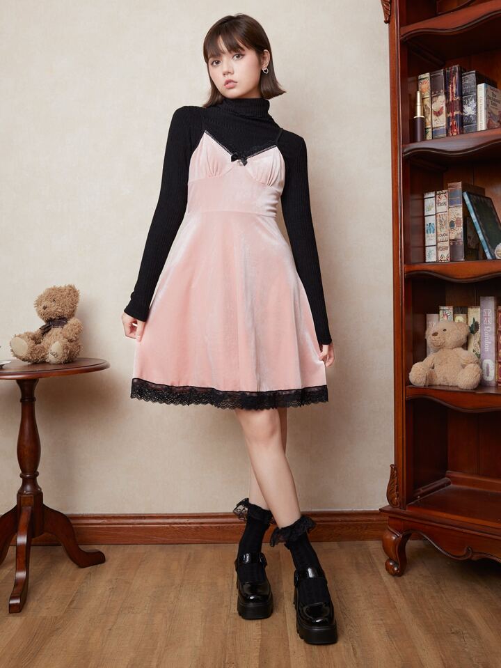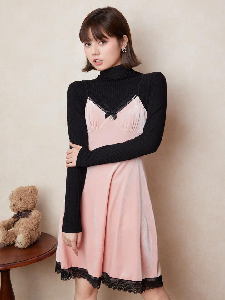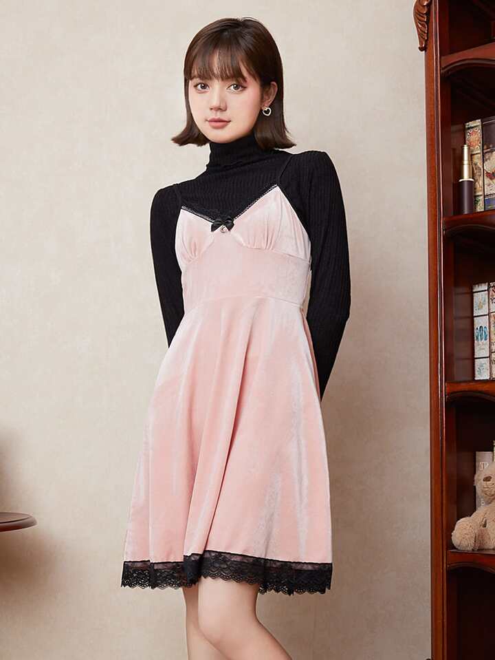 Kawaii Lace Trim Velvet Cami Dress Without Top