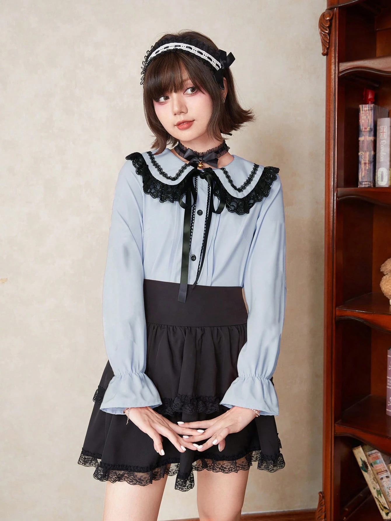 Kawaii Ladies' Pink Lace Decor Peter Pan Collar Blouse