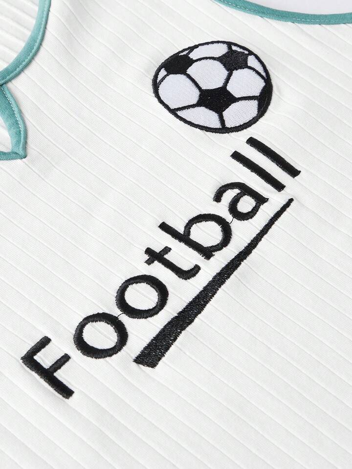 Kawaii Letter & Football Embroidery Color Block Notch Collar Sleeveless Bodysuit With Contrast Trim