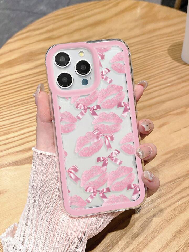 Kawaii Lipstick Print Bow Design Phone Case Compatible With Iphone