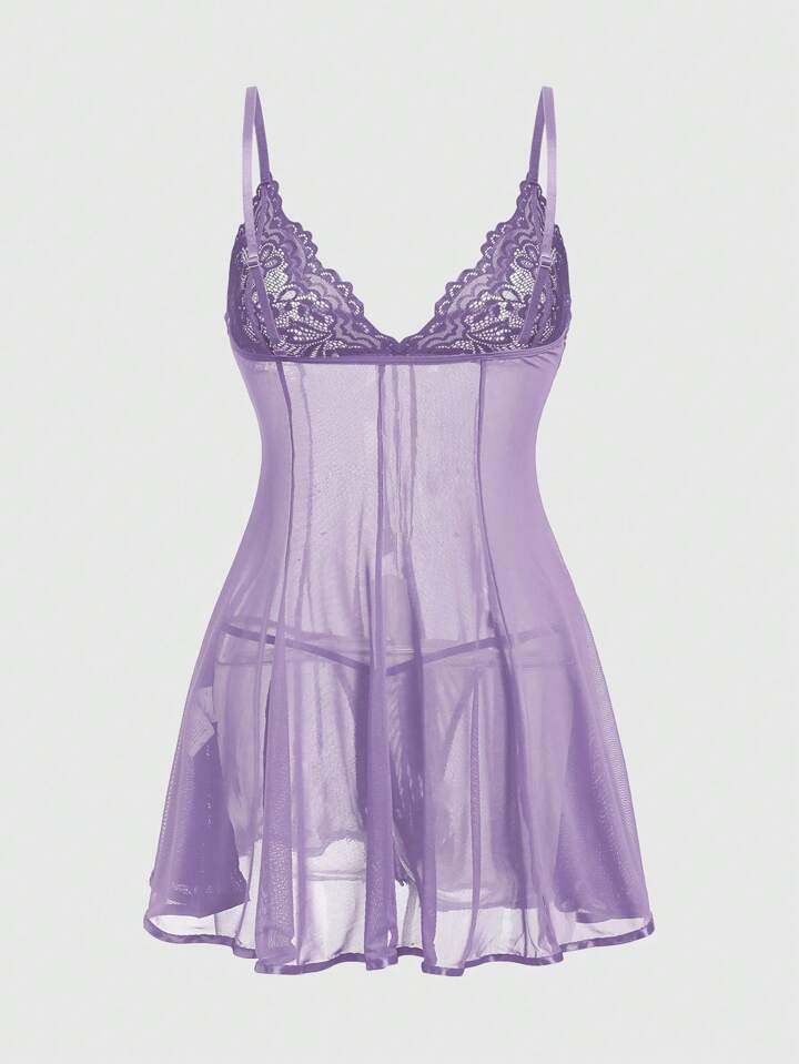 Kawaii Minimalist Sexy Lace Contrast Mesh Corset-Style Lingerie Slip Dress Set, Elongating Your Waistline Ratio And Enhancing Your Sexy Look