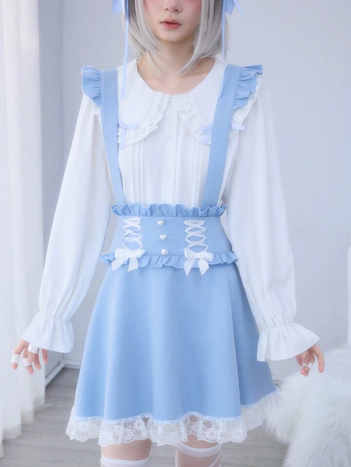 Kawaii Mizuiro Subculture Sweet Floral Lace Patchwork Women Skirt