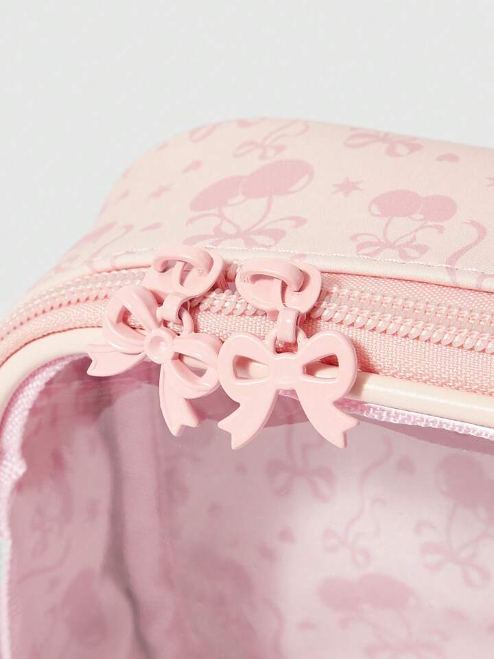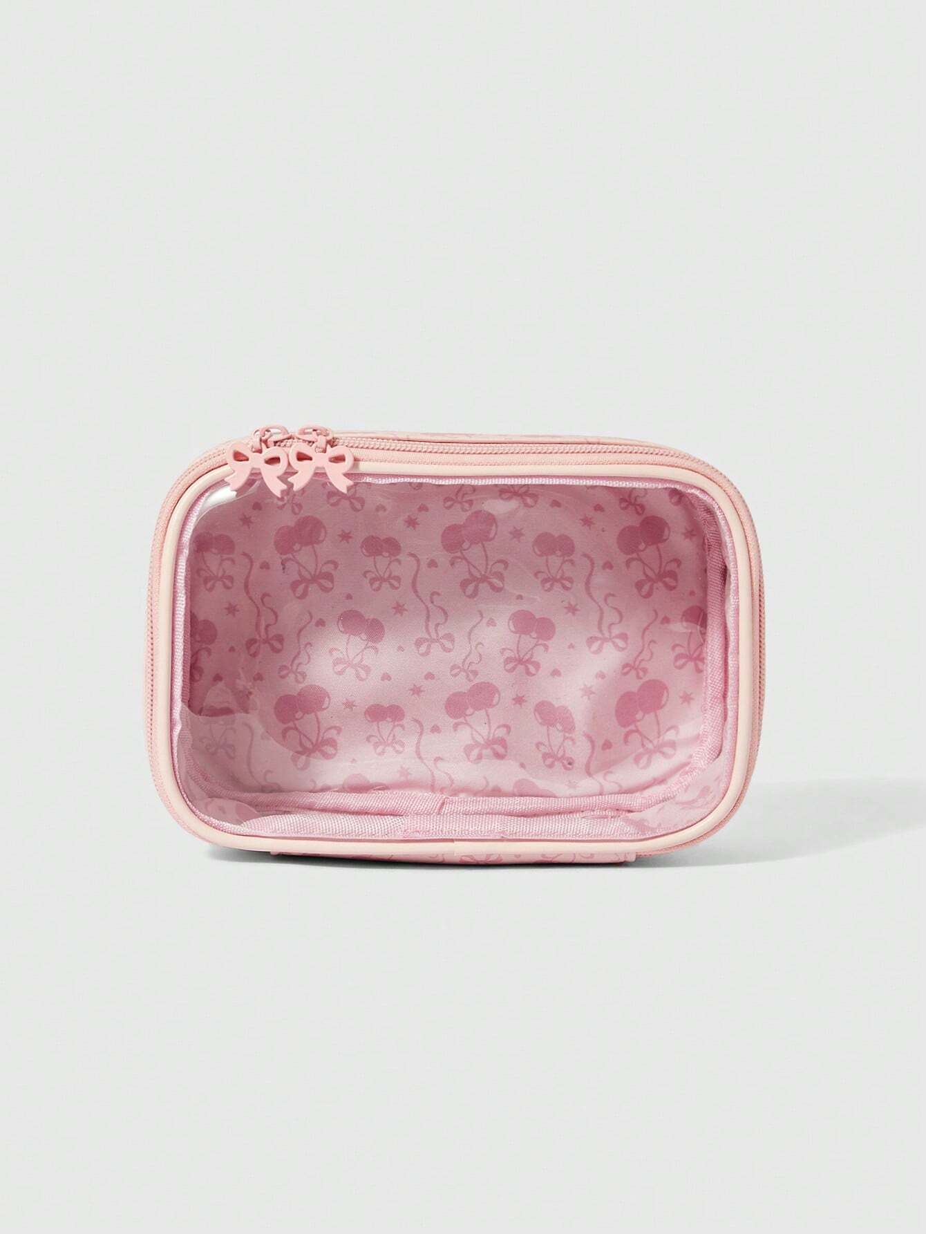 Kawaii Pink Embroidered Bow Semi-Transparent Cosmetic Bag, Suitable For Makeup Storage
