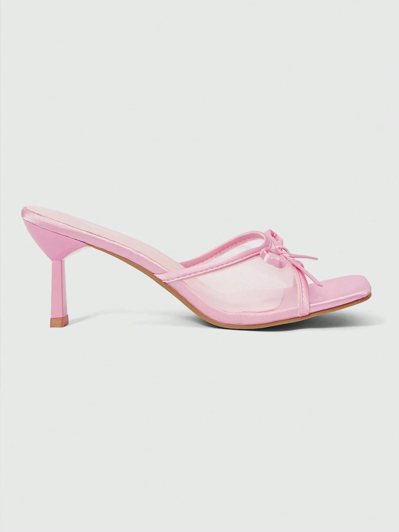Kawaii Pink Summer New Mesh Breathable Open Toe High Heel Sandals, Versatile Minimalist Stiletto Ladies High Heel Sandals