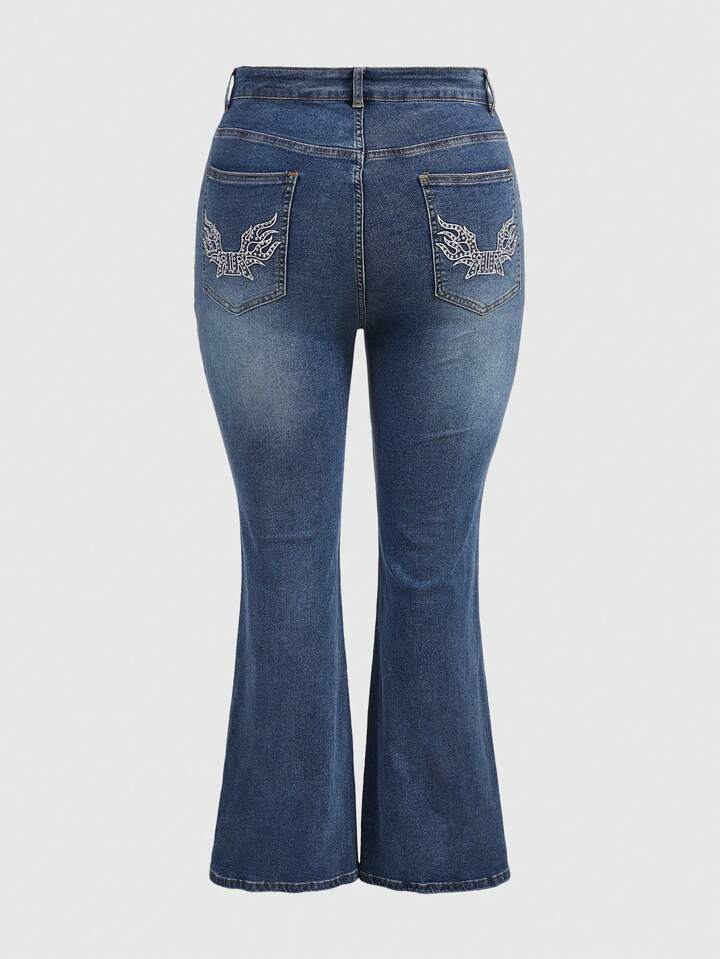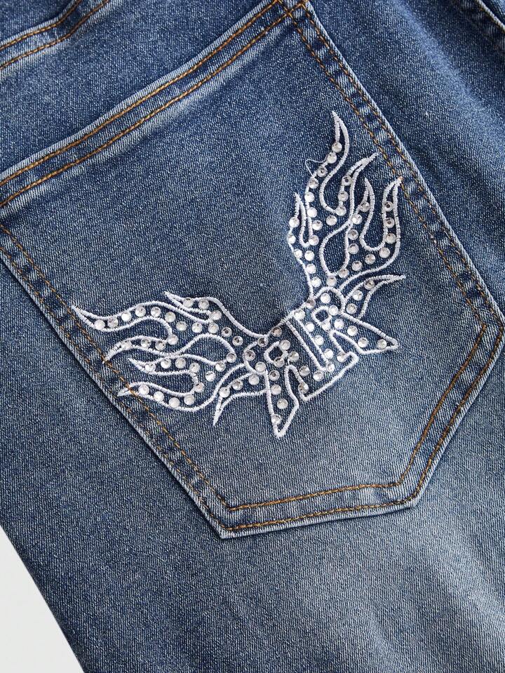 Kawaii Plus Rhinestone Wing Pattern Flare Leg Jeans