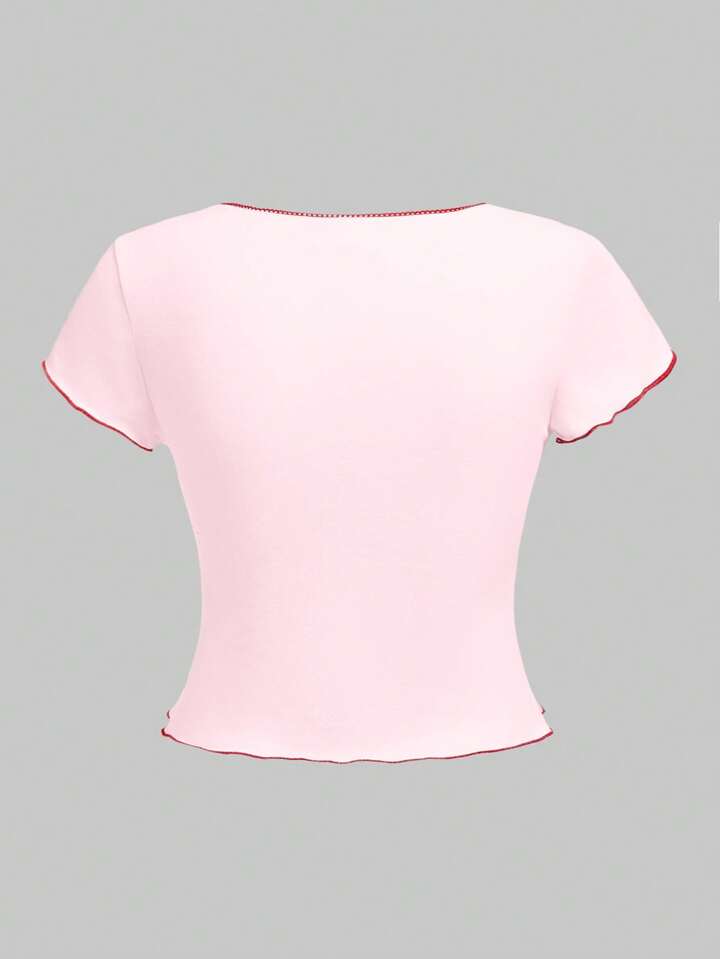 Kawaii Plus Size Valentine's Day Cherry Letter Print Short Sleeve T-Shirt