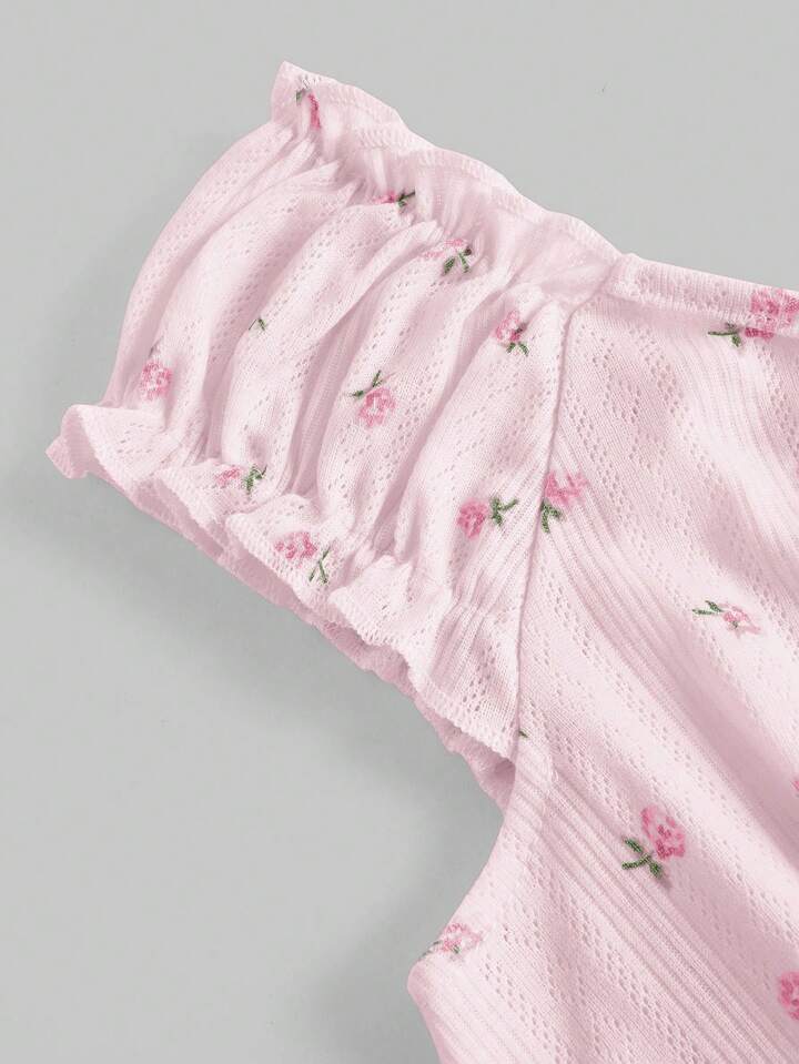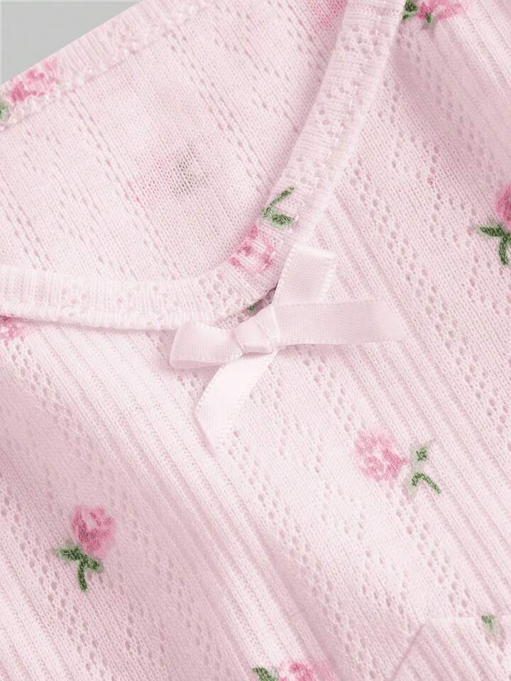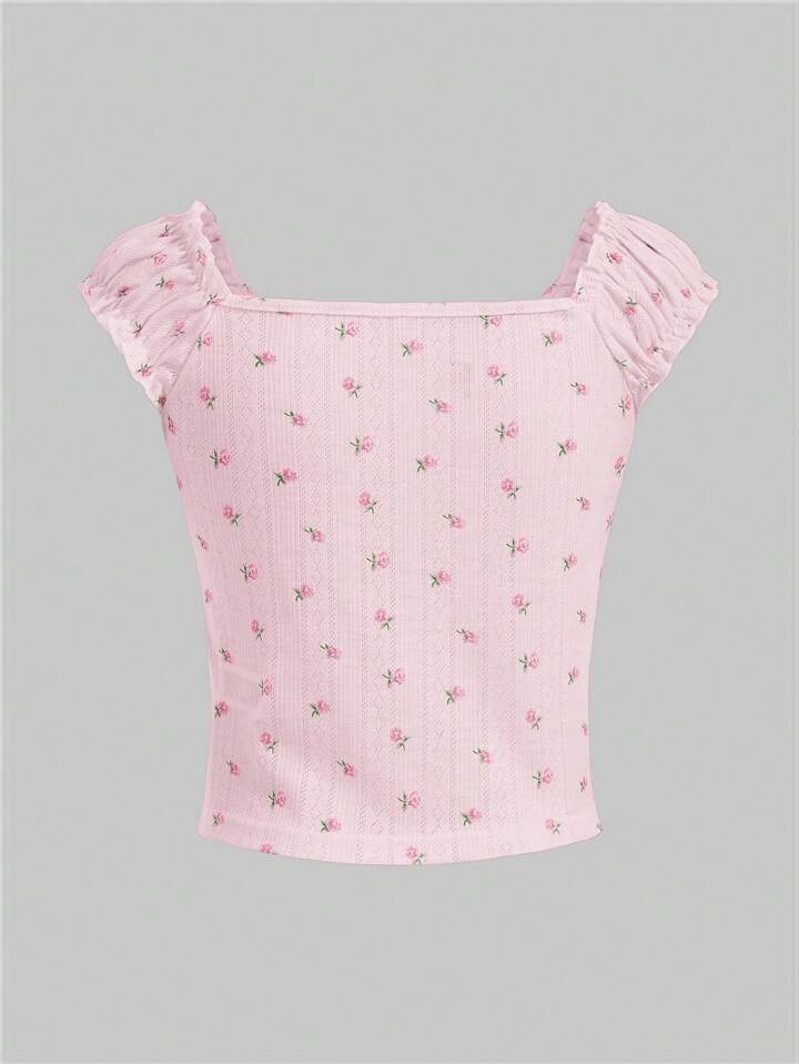 Kawaii Plus Size Women Summer Floral Printed T-Shirt With Bowknot Decoration And Batwing Sleeves